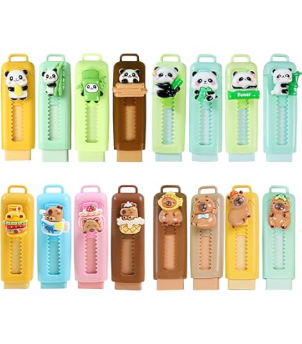 Idéal pour les enseignants, parents et organisateurs de fêtes. Le design en relief et les finitions kawaii en font un accessoire d'écriture unique, parfait pour les enfants qui aiment personnaliser leur trousse avec des objets mignons et originaux. Propre, pratique et rétractable - La fonction push-pull permet une utilisation simple et sans désordre. Idéale pour l'école ou les déplacements. 🐼 Compactes & faciles à transporter: Chaque gomme mesure env. Gommes Kawaii Cabybara Panda Puasok 16 Pcs Gommes Rétractables Enfants, Gommes Kawaii Cabybara Gomme Push-pull école Cadeau 🐼 Matériau sûr et de haute qualité: Fabriquées en TPR non toxique, sans latex ni PVC, ces gommes sont douces, sûres et n'abîment pas le papier. 9 x 2,5 cm, légère et pratique, elle se glisse facilement dans une trousse ou une poche. Il suffit d'appuyer et de tirer pour gommer ou rétracter la gomme. Plus besoin de tailler ni de salir la trousse ! Adorables, colorées et démontables, ces petites gommes japonaises sont à la fois jouets, puzzles et objets de collection. Chaque modèle, riche en détails, stimule l’imaginaire et offre des heures de jeu créatif Design animal irrésistible - Ce lot regroupe deux motifs ultra populaires: cabybaras craquants et pandas adorables ! Une solution pratique et hygiénique pour l'école au quotidien. 🐼 Rétractables et propres à utiliser: Grâce à leur mécanisme push-pull ingénieux, les gommes restent propres et bien protégées. Plus de copeaux ou de gommes sales dans la trousse. Jeu de 16 Gommes]In the VICHOS cadeaux anniire invités, vous recevrez 16 gomme crayon rétractables de dessins animés, avec un total de 8 gomme kawaii de dessins animés Cosas De Capibara 4-Pack Capybara Push-Pull Erasers - Cute Retractable Pencil Erasers For School & Office Cute Erasers 🐼 Motifs Cabybara & Panda adorables: Ce lot de 16 gommes rétractables associe deux des animaux les plus mignons : le cabybara et le panda !