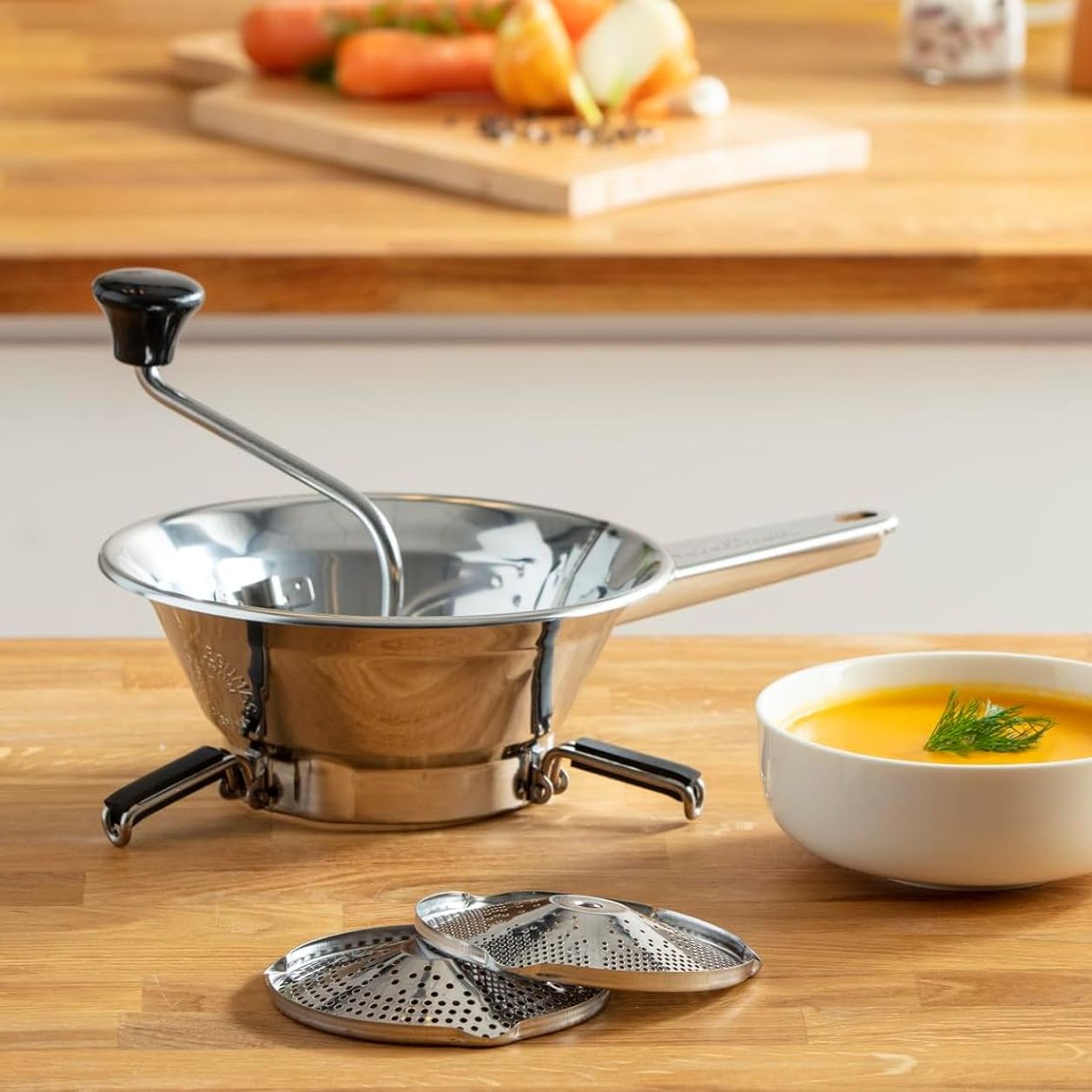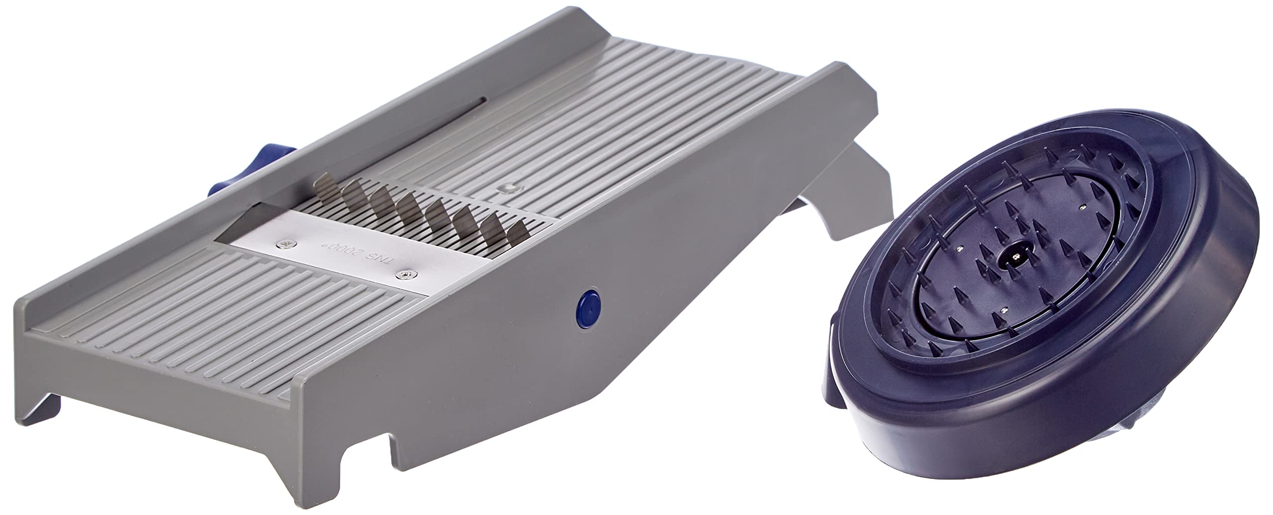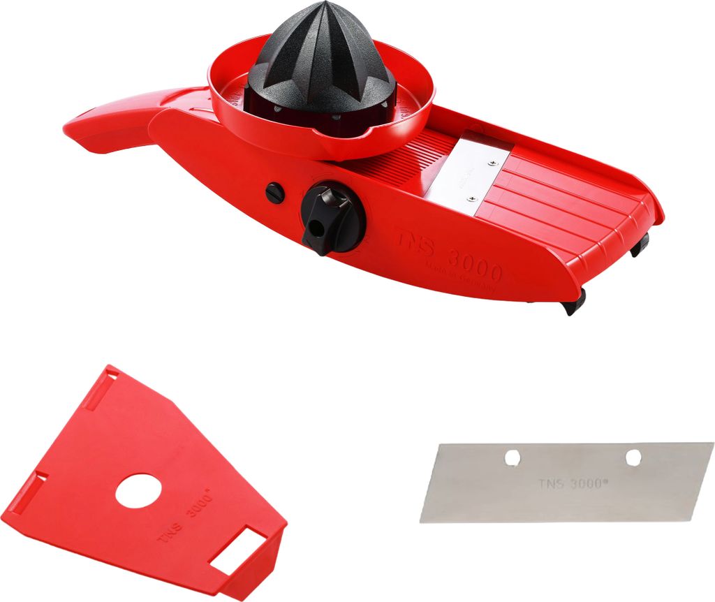 TNS-2000 kiwi-blau Trancheur de légumes/vegetable slicer Moulin à Légumes DUO à Poignée Amovible - Cuisine Râpe Légumes Tout-en-un : pas d'inserts nécessaires pour changer Grâce à la programmation intégrée avec un total de 9 réglages différents, il ne nécessite aucun insert et cherche ainsi les identiques. Même le porte-restes est multifonctionnel et peut également être utilisé comme presse-agrumes. Le TNS 2000 Moulin à légumes « All in One » est la mandoline originale, fabriquée en Allemagne depuis plus de 40 ans. Reconnu pour ses apparitions télévisées et sa présence sur les marchés, ce modèle tout-en-un révolutionne la préparation des légumes La poignée pratique dispose également d'un œillet de suspension pour un rangement facile. Légumes Twistés - Pour des légumes au quotidien | Moulinex Les matériaux utilisés sont bien sûr en plastique alimentaire, sans plomb et sans cadmium, les lames de coupe sont en acier inoxydable., Fabriqué en Allemagne. Il coupe facilement et avec précision tous les types de légumes en tranches, en bandes et en cubes de différentes épaisseurs.