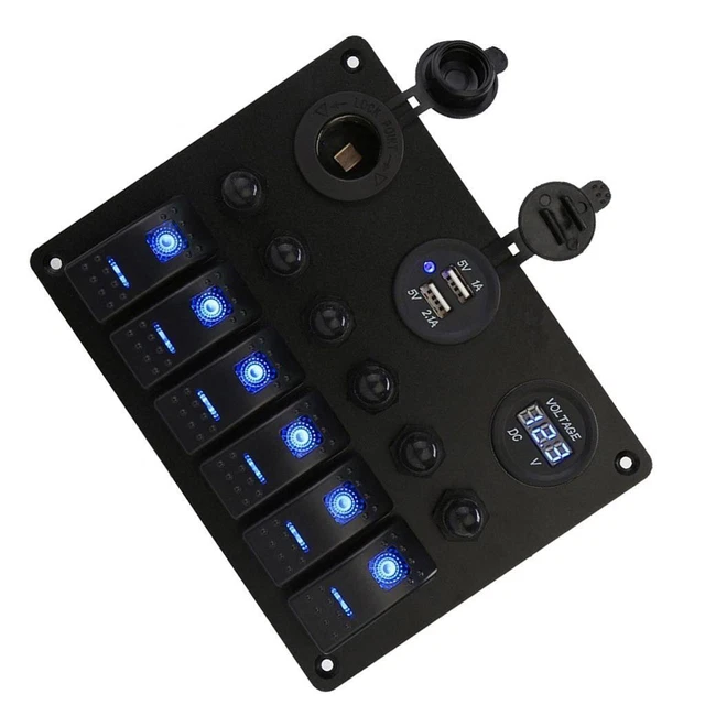 Interrupteur à Bascule, Interrupteurs de Bateau 5 Broches à Bascule Interupteur 12 V Camping Car Briny River 1 Ensemble 12 V 5 A 3 Broches Commande Trim Bateau Interrupteur U00e0 Bascule Marin Interrupteur Haut Bas Panneau Commande U00e0 Bascule Adaptu00e9 Pour Camping-Car (Remarque : ce produit est en vrac et nécessite un auto-assemblage, ce qui est relativement simple) Application : cet interrupteur haut et bas est adapté à la plupart des bateaux 12 V, yachts, camping-cars, voitures, etc. Facile à installer : design intuitif et réglages simples, installation simple. Pcs DC 20A 12V Rond Interrupteur à Bascule pour Voiture Bateau avec LED Bleu L'interrupteur à bascule convivial assure un fonctionnement fluide même dans des conditions d'eau dynamiques. Compatibilité : Convient pour bateau, voiture, camion, chariot, SUV, motoneiges, camping-cars, remorques, bus, camping-cars, caravanes, motos, etc. ... Remarque Sa structure ergonomique permet une utilisation continue à long terme. Large application : en plus d'être principalement utilisé pour les systèmes de réglage de l'inclinaison des bateaux, il peut également être utilisé dans de nombreuses applications marines différentes.