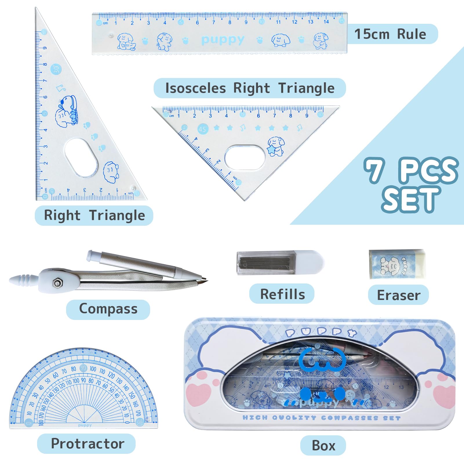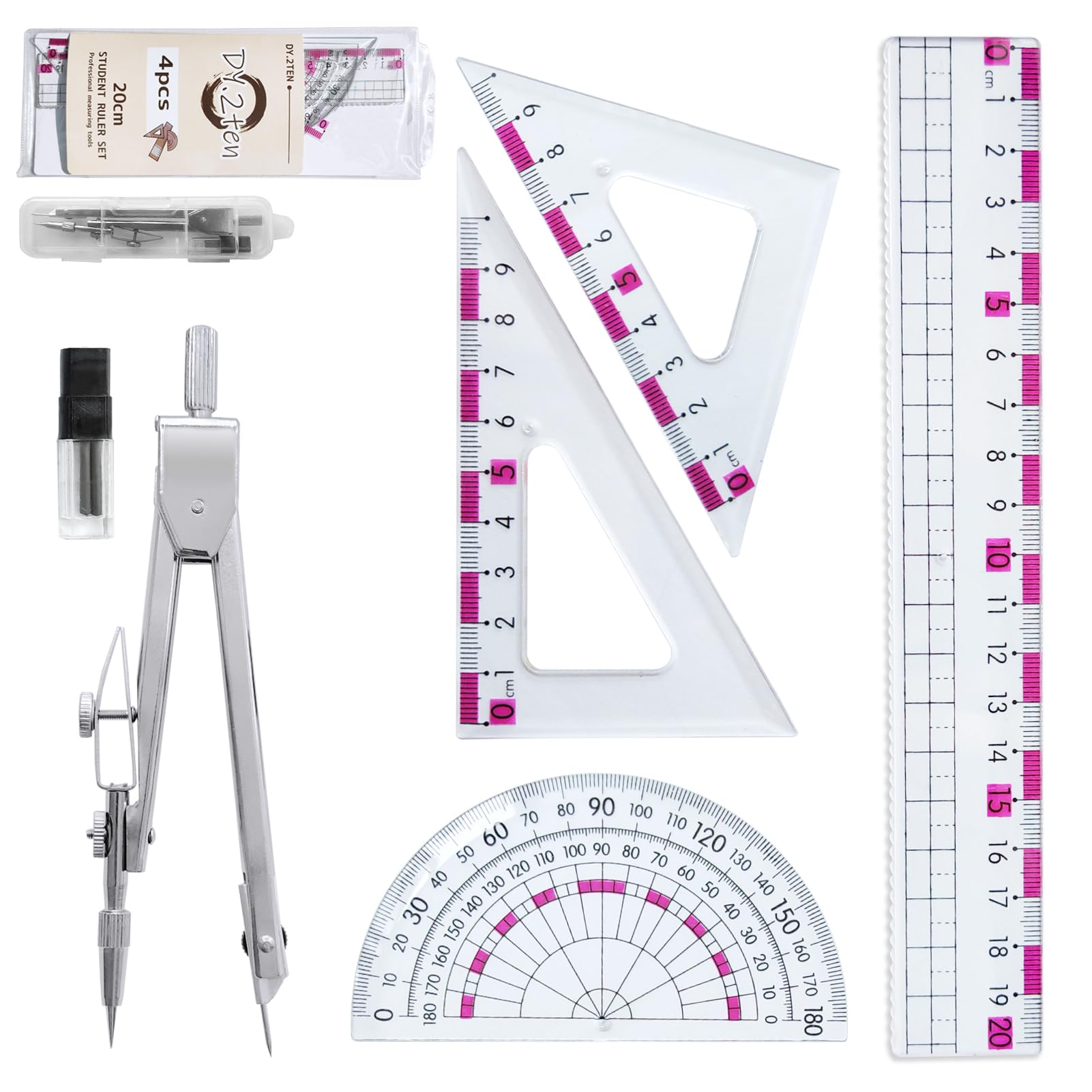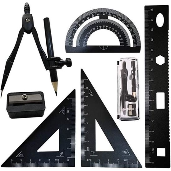 C'est un choix pratique pour les enseignants et les étudiants. Caractéristiques: 【Echelle Claire】 La règle est faite de plastique de haute qualité, durable, difficile à user et à casser, de haute définition et d'unité centimétrique (angle) précise pour assurer l'exactitude des données. L'assortiment parfait correspond davantage à vos besoins. 【Compas Mathématique】Le matériau métallique rend le compas plus robuste et durable, et moins sujet à des dommages. Chaque pièce de matériel d'examen peut jouer son rôle. Géométrie Boussole Ensemble Kit de géométrie Kit à outils mathématiques Le colis Comprend: 1 pcs * Compas Mathématique 2 pcs * Règles Triangulaires 1 pcs * Règle Droite 1 pcs * Rapporteur 1 pcs * Gomme 1 pcs * Recharge de Mines de Crayon 1 pcs * Etui à Crayons Rappel Chaud: Veuillez tenir les enfants de moins de 3 ans éloignés de cet ensemble de géométrie. 【Ensemble de Compas Géométriques 7 Pièces】 Comprend 1x Compas d'école, 2x Règles triangulaires, 1x Rapporteur, 1x Règle droite, 1x Gomme, 1x Recharge de mines de crayon et 1x Etui à crayons. 4. Le rapporteur d'angle avec surface lisse peut se déplacer facilement sur du papier. Facile à mesurer : les règles sont fabriquées en plastique transparent... Accessoire Dessin Technique Ensembles De Géométrie Dessin Compas, Règles, Rapporteur, Pour étudiants, Kit De Géométrie Compas College Vous pouvez le ranger dans un emplacement dans n'importe quel sac à dos ou bureau. Règle de 15 cm, règle de triangle de 45° et 60° et rapporteur de 180° peuvent répondre à une variété d'exigences de dessin. DY.2ten Ensemble de Géométrie,Kit Geometrie Compas, Règles 20cm, rapporteur d'angle, équerres ,pour étudiants, Kit Géométrie pour étudiants,fourniture scolaire, 6 Pièces 【Accessoires Complets】 La forme de bloc de la gomme est parfaite pour atteindre les petits coins ou effacer de grandes surfaces rapidement. Articles essentiels pour le début de la saison scolaire. Cet ensemble de compas scolaires saura répondre à la plupart de vos besoins pour dessiner des cercles et mesurer des angles, votre fille ou votre fils l'apprécieront ! Équipé de recharge de mines de crayon de 0., 5mm.