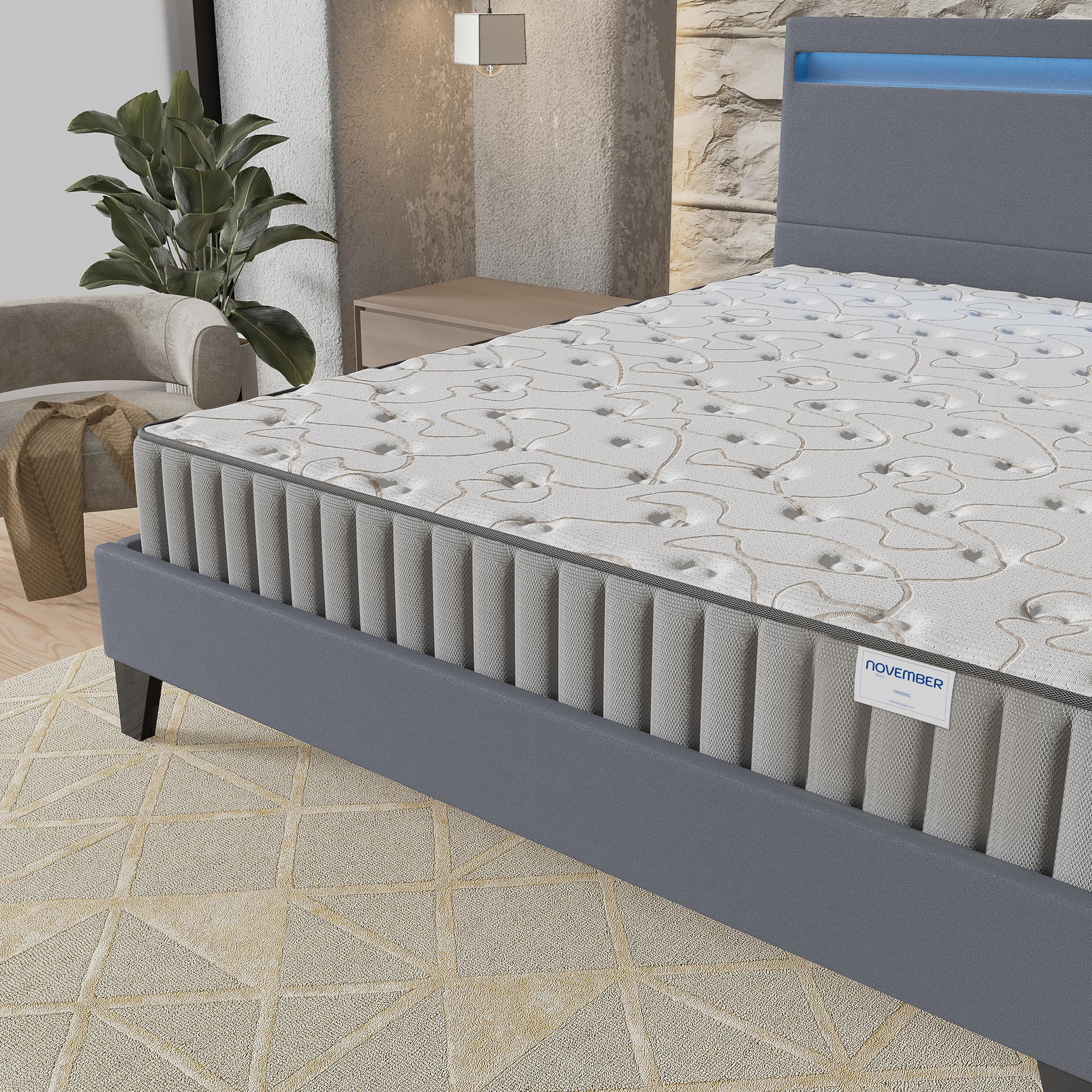 Achetez votre November Sleep Ensemble 140x190 cm dans notre rayon Ensembles de literie sur Rue du Commerce. Matelas latex naturel et mémoire de forme - Lit avec tête de lit - Sommier à lattes MATELAS ORIONIS 🌙 RESPIRABILITÉ et SOUTIEN 🌙 La mousse polyuréthane alvéolée ventilée de haute densité 35kg/m3 permet un soutien bien équilibré entre souplesse et fermeté ☁️ ACCUEIL CONFORTABLE ET DOUX ☁️ Effet « comme dans un nuage » Cela grâce au 2cm de mémoire de forme D50kg/m3 et son coutil d’accueil de qualité supérieure matelassé à 400g/m²., Vous serez surpris ! Sommier Lattes Tête De Lit Capitonnée Grise Ensemble T Te De Lit Matelas M Moire De Forme Latex + Sommier 140x190 - Bleu - S Ensemble Lit Matelas Mémoire De Forme 🇫🇷 NOVEMBER MARQUE FRANÇAISE 🇫🇷 Vous propose ici l’ensemble Matelas + Lit Complet: matelas Orionis EXTREMEMENT DURABLE dans le temps de par sa technologie à mémoire de forme. La technologie à lattes en bois absorbe la force des mouvements permettant une relaxation complète ♻️ RESPIRABILITÉ & DURABILITÉ ♻️ Le sommier permet à l’humidité d’être évacuée. Le meilleur moyen d’aérer votre matelas et d’éviter la prolifération d’acariens et de bactéries. Lit 140 x 190 cm avec tête de lit capitonnée - Tissu - Beige Matelas... Lit double 140x200 en lin gris avec tête de lit capitonnée avec sommier MATELAS ORIONIS 💆♂️ UN COUCHAGE TONIQUE ET RÉPARATEUR 💆♀️ La partie supérieur constituée de mémoire de forme est la solution parfaite pour contrôler les points de pressions en s'adaptant aux différentes parties du corps et offrir une indépendance de couchage efficace (dormir à deux sans dérangements) ♻️ ZÉRO matière toxique ♻️ Approuvé et certifié par SANITIZED, garantissant la non-présence de substances nocives pour la santé. Le tout renforcé par une traverse centrale métallique avec 2 pieds de soutien supplémentaires pour plus de stabilité et de sécurité L’épaisseur totale de 16 cm en fait un matelas assurant un soutien de la colonne vertébrale performant – Lit complet & Tête de Lit Capitonnée avec un revêtement simili.
