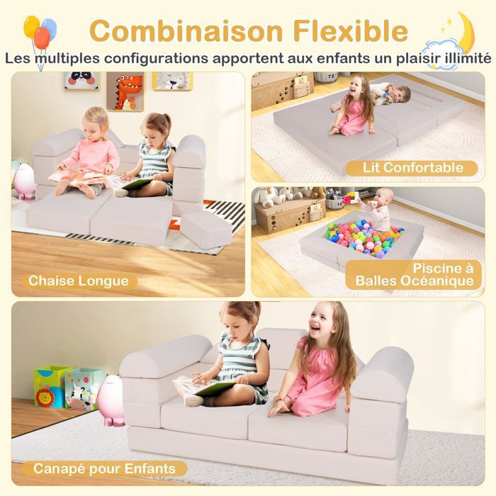 Canapé Modulable Enfant DREAMADE Canapé Pour Enfants,Canapé Convertible Et Pliable En Mousse, Housse En Tissu Peluche Amovible,pour Garçons Et Filles,Gris - Puériculture & Eveil Bébé Canapé Convertible Enfant Canapé D'angle Nova Convertible Tissu Bouclette Blanc 4 Places - Canapé BUT Design modulable pour répondre à différents besoins et stimuler la créativité de l'enfant / Rembourrage épais en mousse pour un confort et un soutien optimaux / Tissu en flanelle doux et respectueux de la peau pour une sensation agréable / Bords / Canapé enfant Décoration chambre Lignea Kids