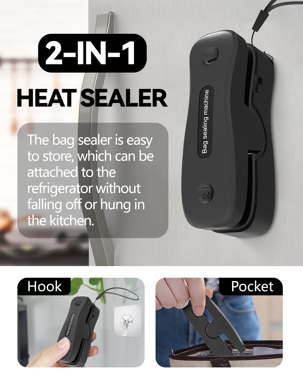 Scellage instantané pour une fraîcheur prolongée : Crée une fermeture hermétique sur les sachets de chips, biscuits, pain et autres collations pour préserver la fraîcheur, éviter les déversements et réduire le gaspillage alimentaire Description du produit Conception compacte et rechargeable : Format portable de 9., 6x3., 3x4., 4 cm avec batterie rechargeable intégrée pour une utilisation sans fil, idéal pour sceller les sacs de snacks et d’aliments à la maison, en voyage ou lors d’activités extérieures Sûr et simple d’utilisation : Chauffe rapidement par simple pression d’un bouton et scelle les sacs en plastique ou en aluminium sans lames tranchantes ni gros appareils, parfait pour les foyers avec enfants ou un espace limité Compact with Magnetic Base: The 3., 78x1., 3x1., 73 inch mini size includes a strong magnetic backing so it sticks neatly to your fridge or metal for easy access and space-saving kitchen organization Rechargeable and Cordless Convenience: Built-in USB rechargeable battery eliminates the need for constant replacements, allowing you to reseal bags anytime at home or on the go, perfect for kitchens, picnics, and travel Conservation Aliments Frais Snack Bag Sealer, Sealer Machine, 3.78x1.3x1.73 Inches Presse à Sceller Snacks 2IN1 Mini Heat Bag Sealing Cutter Machine Hand Sealer Food Resealer De Function Sealing and Cutting: Equipped with sealing and cutting heads, this handy resealer lets you both reclose snack bags and open them cleanly, offering practical everyday use for chips, , bread, or dried food