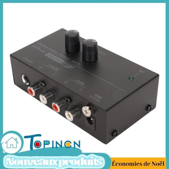 AMPLIFICATEUR PRÉAMPLI POUR platines Phono RCA stéréo * entrée AUX Amplificateur Vinyle Préampli Phono Pour Platine, Mini Préamplificateur Phonographe Audio Stéréo électronique Avec Entrée, Sortie, Faible Bruit Et Alimentation DC 12 V, Pour Tourne-disques (PP500 Ampli Platine Vinyle 68dbu à 0dbu SNR : la réponse en fréquence du préampli phono est RIAA, augmentation de 35 dB, SNR est de 68 dbu à 0 dbu, pondéré A, très stable. Liste des packages : 1 x amplificateur 1 x manuel d'utilisation 1 x adaptateur secteur Remarque : Veuillez noter que le nouveau type et l'ancien type de ce produit seront envoyés au hasard, et assurez-vous que cela ne vous dérange pas avant de commander. Pour le récepteur, cela peut être connecté à des haut-parleurs, des ordinateurs, des ordinateurs portables et plus encore. Preampli phono pour platine vinyle ; 4 / 5. 1 avis · Prix de comparaison. 38,84 € ; 5 / 5. 1 avis · Prix le bas sur 30j. 25,05 € ; Prix le bas sur 30j. 18,24 Excellentes Performances : performances AU‑DIO ultra faibles offrant une excellente qualité sonore, le matériau métallique est brillant, robuste et durable. Pour vous aider à choisir le préamplificateur phono le mieux adapté à votre platine vinyle, nous vous proposons un comparatif basé sur plusieurs critères essentiels : compatibilité avec les cellules MM et MC, qualité sonore, connectique et facilité d’intégration dans un système HiFi Le préampli phono fonctionne pour convertir le signal téléphonique en signal de niveau ligne, la sensibilité d'entrée est de 5,3 mV à 1 kHz. Facile À Utiliser : connectez n'importe quelle platine à un équipement audio moderne sans entrée phono spécialisée pour amplifier la musique.