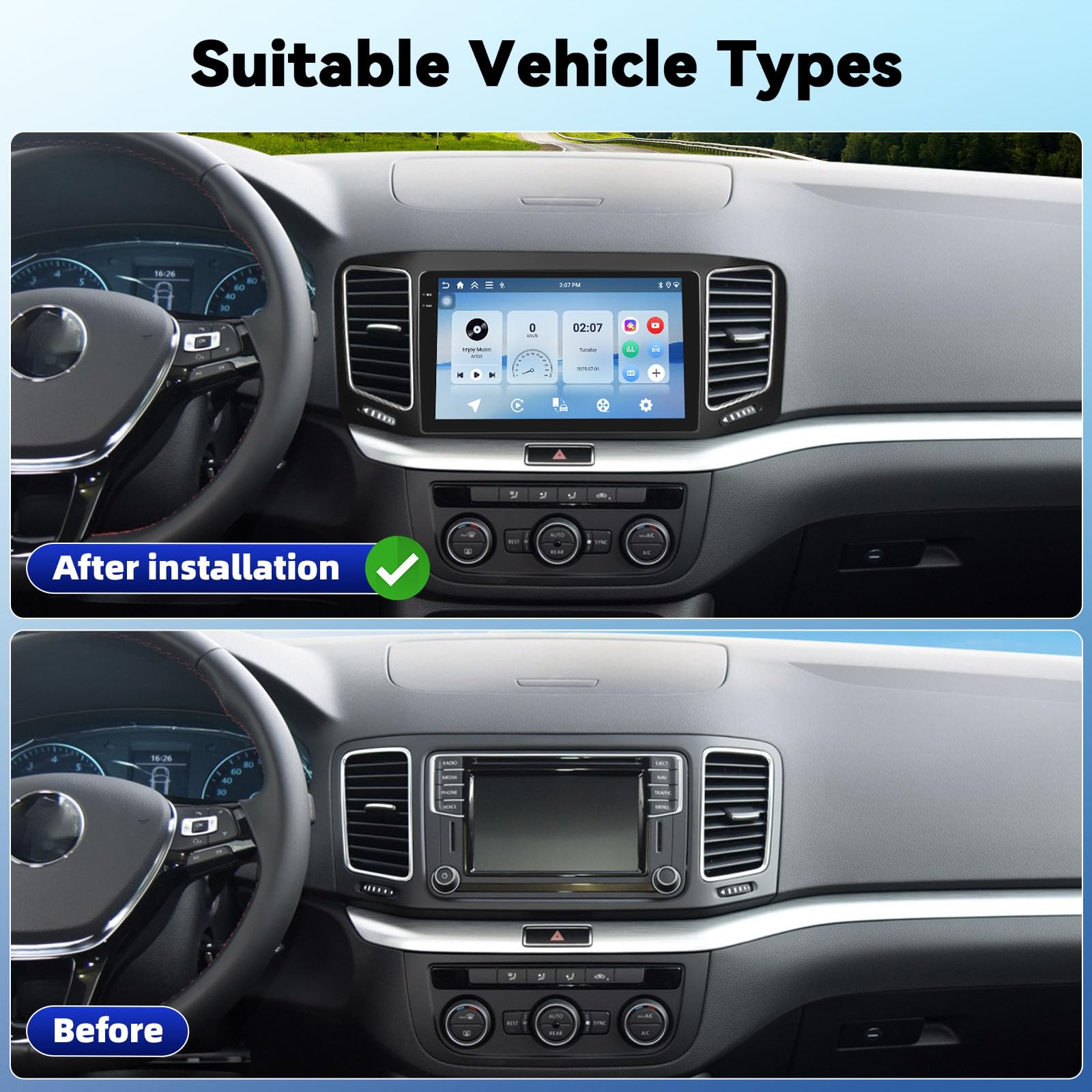 GPS WiFi Bluetooth Caméra Recul 7 "pour VW Sharan 1998-2009 Autoradio Sans Fil Apple Carplay Android 13 Unité Principale Automatique GPS WIFI Navi 4 + 64GB Caméra BT 34 GPS WiFi Caméra Recul AHD Caméra de recul AHD et commande au volant : l'autoradio Android 14 avec caméra de recul AHD a une excellente vision nocturne, est étanche et fiable, et l'aide au recul rend le stationnement encore plus facile. Wireless Carplay & Android Auto :CarPlay ist Apples sprachaktiviertes System für Autos, das darauf abzielt, über Siri und Ihr iPhone eine vereinfachte Startseite auf dem Touchscreen des Autos anzuzeigen, ohne dass Sie ständig auf den Bildschirm starren oder Tasten bedienen müssen Cet autoradio Android combine navigation GPS 3D, CarPlay / Android Auto, Bluetooth HD, Wi-Fi / 4G, écran tactile Full HD, DSP audio, et une compatibilité totale avec vos applications préférées (Waze, Spotify, YouTube, Google Maps Navigation GPS et WiFi : autoradio Carplay 4 + 64 G pour Volkswagen Sharan 2010, 2011, 2012, 2013, 2014, 2015, 2016, 2017, 2018, 2019, 2020, 2021, 2022, avec GPS intégré. Prise en charge du contrôle du volant, il suffit d'utiliser les boutons sur le volant pour contrôler l'unité principale de navigation GPS Android de la voiture ou appeler la voix. Autoradio GPS Android 13 VOLKSWAGEN Sharan – GOAUTORADIO Connecté au Wi-Fi, Google Maps peut être utilisé parfaitement, vous pouvez aller où vous le souhaitez et ne plus jamais vous perdre. 1 Lien miroir 2 Bluetooth 3 Commande au volant Système de voiture Android filaire : navigation, appels, envoi et réception d'informations, écoute de la musique et d'autres opérations grâce à la connexion par câble de données. Radio FM avec écran RDS pour les informations sur les stations. Bluetooth FM/RDS & Mirror Link : le stéréo de voiture avec Bluetooth pour VW Sharan 2010 2011 2012 2013 2014 2015 2016 2017 2018 2019 2020 2021 2022 streaming audio sans fil., et mains libres. Vous pouvez acheter directement dans le Play Store pour la navigation hors ligne. WIFI Avec fonction GPS, il prend en charge à la fois en ligne et hors ligne. Si vous n'êtes pas sûr, vous pouvez nous envoyer un message ou une image.