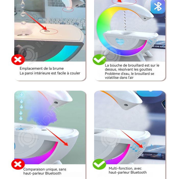 Le contrôle intuitif des boutons permet une utilisation facile et sans effort. Son petit humidificateur pour chambre à coucher s'adapte parfaitement à votre table de chevet, libérant des huiles essentielles pour les humidificateurs pour envelopper votre pièce d'arômes apaisants Note: réflexion de lumière et différents écrans peuvent causer la couleur de l'article dans un peu différente de la vraie chose. Diffuseur d'aromathérapie: avec un réservoir d'eau d'une capacité de 200 ml, le diffuseur d'arômes peut durer jusqu'à 8 heures d'utilisation continue. De plus, un excellent choix de cadeau à offrir à votre famille ou à vos amis. Enceinte Bluetooth Veilleuse Diffuseur D'Arômes Avec Effet Flamme, Humidificateur D'air, 7 Couleurs 3 Timer Arret Automatique Sans Eau 96708073 Humidificateur Avec Veilleuse Modes de veilleuse confortable: la lumière supérieure provient de la sortie de pulvérisation avec la brume et crée une atmosphère romantique vive semblable à une flamme, tandis que la veilleuse chaude en dessous contribue à la renforcer. Remarque: il est important de ne pas verser une quantité excessive d'eau au-delà de la ligne de niveau maximale. Haut-parleur intégré: en plus des 8 effets de bruit blanc fournis avec le diffuseur d'arômes lui-même, vous pouvez également connecter la machine à votre propre appareil et écouter votre musique ou podcast préféré, pour profiter au maximum de votre temps libre ! En plus du bruit de fond activé, tout cela vous offre un compagnon de sommeil et de travail. Luminance Vers lavant digérer diffuseur d air frais pour ventilateur au lieu Pré La machine à bruit blanc est composée de 8 effets sonores différents, qui peuvent être joués individuellement ou ensemble en fonction de vos préférences personnelles. La machine à bruit blanc est composée de 8 effets sonores différents : pluie, eau, oiseaux,, sonneries, ondes alpha, insectes et piano. plug-in efficace : Plus besoin de vous soucier des pannes de courant