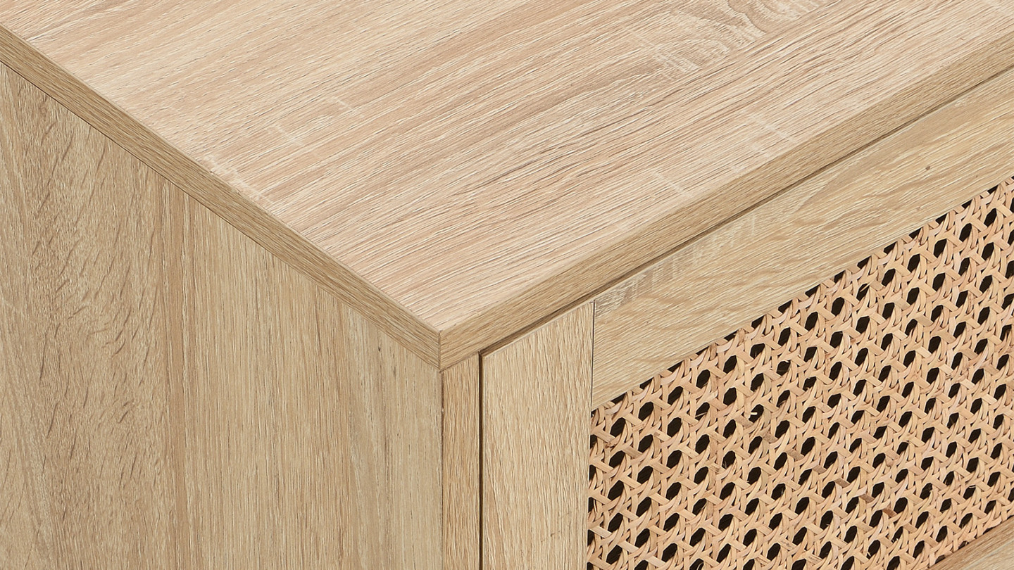Meuble Tv Style Scandinave Rustique Meuble Tv 2 Portes Vert Et Cannage 160 Cm - Luma Luma Meuble Salon 2 Portes Style Rustique Scandinave Niche ouverte avec passe-câbles pour installer box ou consoles sans fil visible. Sublimez votre coin salon avec le meuble TV Sana. Avec ses 160 cm de long, il accueille facilement un téléviseur grand format tout en proposant des rangements bien pensés Besoin d'un Meuble TV ? vous propose des modèles design avec expédition sous 24/72h. Service client interne et paiement en 3x 4x sans frais Ne grimpez pas dessus et ne l’utilisez pas comme marchepied., 4., Entretien : Nettoyez avec des produits adaptés aux matériaux. Poignées métal noir assorties au piètement pour un style cohérent et actuel. importation bénévole sousmarin meuble tv bois long Aperçu Déballage Vide Le meuble TV Sana offre une solution élégante et pratique pour organiser votre coin salon. Son design rustique-scandinave séduit par son coloris vert profond, ses poignées et pieds en métal noir, et sa structure basse au piètement élancé. Avertissement De Sûreté Avertissements de Sécurité :L'utilisation de ce meuble est soumise aux consignes suivantes pour prévenir tout risque d'accident ou de dommage :1., Installation : Installez le meuble sur une surface plane et stable. Ne l’exposez pas à l'humidité, à la chaleur excessive ou aux rayons directs du soleil. Placez les objets lourds dans les parties inférieures pour améliorer la stabilité., 3., Utilisation : Ce meuble est conçu pour un usage intérieur. Soulevez-le au lieu de le glisser pour éviter d'endommager les pieds ou le sol., 7., Utilisation Interdite : Ne modifiez pas la structure du meuble et évitez d’y placer des objets instables ou en surplomb. Empêchez les enfants d’ouvrir plusieurs tiroirs en même temps., 6., Déplacement : Videz le meuble avant de le déplacer. Pratique avec ses portes soft close et esthétique avec ses finitions soignées, le meuble TV Sana combine l'utile et l'agréable dans votre salon.