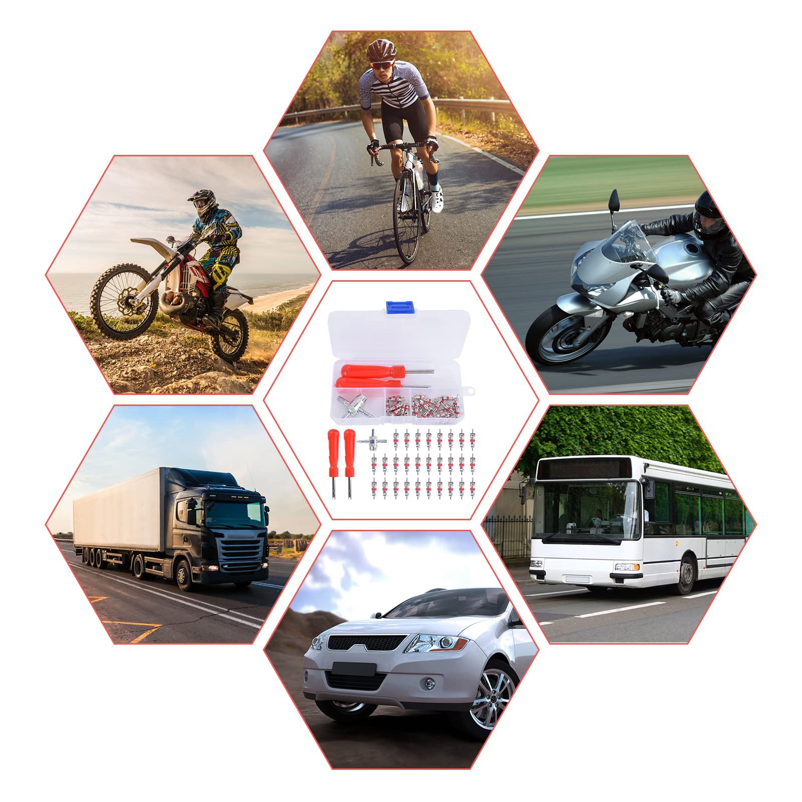 Forfait comprenant : 30 noyaux de valve 2 extracteurs d'obus de valve 1 outil de réparation de valve de pneu 4 en 1 1 Boîte de rangement Petits conseils : ▲ Veuillez confirmer si la taille de notre produit correspond à ce dont vous avez besoin avant d'acheter. Vesaneae 33PCS Kit de Réparation de Valve Pneu, Kit de Obus de Valve avec Démonte Valve Pneu, Noyau Valve et Outil de Valve à 4 Voies, Outils de Réparation de Voiture, Kit de Dépose de Valve de Pneu Nom du produit : kit d'outils pour valve de pneu Matériau : métal, plastique Taille : Noyaux de tige de soupape : env. ▲Veuillez permettre qu'il y ait une certaine erreur dans la mesure manuelle. Nous le résoudrons dans les 24 heures. Si vous n'êtes pas satisfait des produits que vous avez reçus, n'hésitez pas à nous contacter directement par e-mail. ❤Peut saisir fermement le noyau de la valve et démonter facilement les inserts de valve et nettoyer la valve, ce qui permet d'économiser du temps et des efforts. Valve Demonte Obus Avec 4-1 Outil De Réparation Valve Pneu Portable Obus De Valve Facile A Utiliser Pour Remplacement Velo Vttmotos Voiture 82527837 ❤L'outil de valve est emballé dans une boîte en plastique pour un rangement facile et un gain de place. 95mm Outil de réparation 4 en 1 : env. ❤Un outil pratique pour l'entretien de la voiture, adapté aux voitures, camions, motos, vélos, etc. L'outil démonte obus Techmax vient démonter l'obus qui se trouve dans la valve de votre pneu et permet de retirer l'air afin de pouvoir changer le pneu Outil 4 En 1 Démontage Valve Vesaneae 33PCS Kit De Réparation De Valve Pneu, Kit De Obus De Valve Avec Démonte Valve Pneu, Noyau Valve Et Outil De Valve à 4 Voies, Outils De Réparation De Voiture, Kit Noyaux Valve Pneu Voiture Moto Vélo ❤L'outil de réparation de valve 4 en 1 est parfait pour retirer les inserts de valve, nettoyer les valves et réparer les filetages internes et externes des valves.