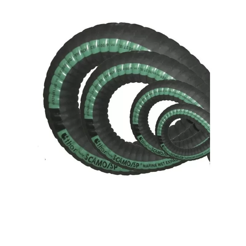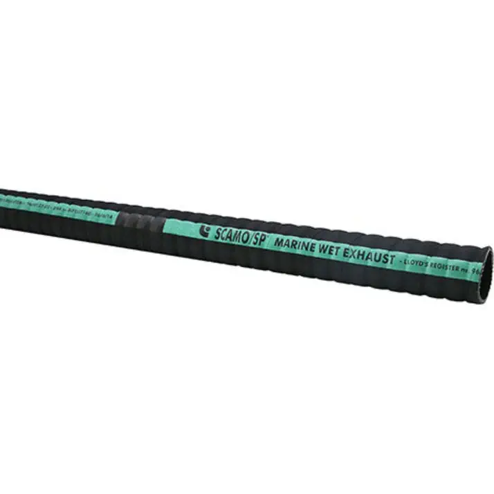 Tuyau en caoutchouc ondulé à hélice (rayon de courbure de 1 à 1,5 fois le diamètre intérieur), adapté à l'évacuation des gaz et au refroidissement des échangeurs de chaleur sur les bateaux de plaisance Caractéristiques : Poids : 1,25 kg., Rayon : 185 mm. Scamo Marine Homologué Tuyau Souple Pour évacuation Des Gaz Brûlés RG-2Q54 échappement Marin Refroidissement Convient pour évacuation de gaz brûlés et pour le refroidissement des échangeurs de chaleur sur les bateaux de plaisance. Convient pour évacuation de gaz brûlés Convient pour le refroidissement des échangeurs de chaleur Tuyau d'échappement Scamo ø105 mm - au mètreTuyaux d'échappement pour gaz inert, eau chaude, eau de mer et produit chimique à faible position : Caoutchouc renforcé avec double hélix en acier et textile synthétique très résistantT° d'utilisation : - 30°C à 100°C P° d'utilisation : 3 Bars P° maxi d'utilisation : 9 Bars Normes : SAE J 2006:2003 R2 et ISO 13363... Durite échappement et remplissage - Auto, bateau, industrie NA Temp : -30 °C +100 °C., Vendu au mètre. Rayon de courbure de 1 à 1,5 fois le diamètre intérieur Norme : SAE J 2006:2003 R2 ISO 13363:2004 Type 2 Classe B.