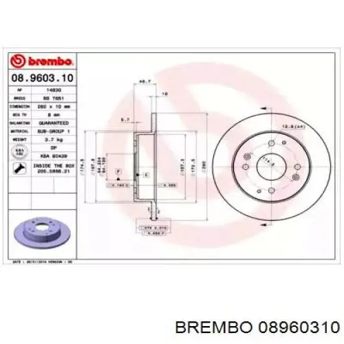 Jeu de 2 disques de frein BREMBO 08.B601.10 08.9603.10 Brembo dsco de freno trasero Jeu de disques arriere plein 260X10 [HONDA/ROVER] Poids 7,4Kg [ACCORD IV 1990 - 1994, ACCORD V 1993 - 1998, ACCORD VI 1994 - 1998, CIVIC VI 1997 - 2001 -;600 1993 - 1999 -] Notre Disque de frein arrière de la marque BREMBO, référence 08.9466.10 est compatible avec tous les véhicules de cette liste. vous recommande le Disque de frein arrière 08.9466.10 pour votre véhicule, retrouvez cette pièce de qualité au meilleur prix sur notre site Disque De Frein 08.9603.10 Brembo | - Disques De Disque De Frein Arrière Brembo développe des pièces de rechange qui respectent ou dépassent les spécifications première monte des constructeurs.
