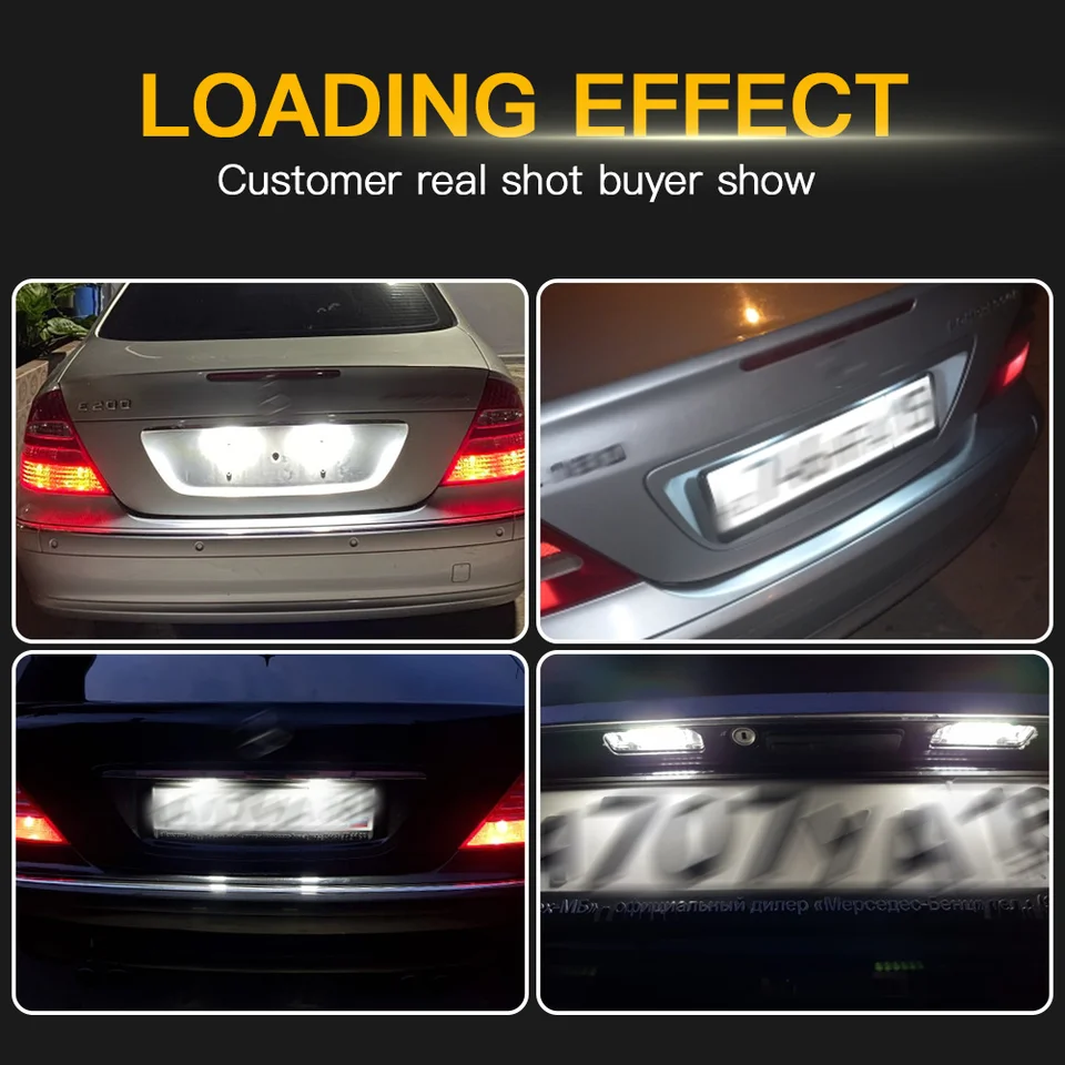 Wresetly Lampe LED de plaque d'immatriculation erreur LED Plaque Immatriculation 12V Pour Classe C S203 PolarLander 2PCS Allume 12V Aucune Lampe De Plaque D'immatriculation Blanche D'erreur La Plaque D'immatriculation De La Voiture LED De Led Plaque Immatriculation 18 Smd Circuit intégré pour tension de 12V DC, économie d'énergie, faible consommation d'énergie,Pas d'erreur O., B. Caractéristiques: 18SMD 3528LED Feu éclaireur de plaque Tension: 12-30V. Spécialement conçu pour Benz avec aucun code d'erreur d'avertissement, message d'avertissement d'ampoule-dehors; Aucune reprogrammation informatique nécessaire Chaque lampe de plaque d'immatriculation est équipée de 18 puces LED SMD3528 Installation facile, remplacement direct avec la qualité et l'équipement d'OEM; Plug and Play, temps de démarrage instantané rapide Demande d'application: Pour 02-05 Mercedes Benz Classe C S203 5 portes break / break (C240, C320) Pour 03-09 Mercedes Benz Classe E W211 berline 4 portes (E320, E350, E500, E550, E55 AMG, E63 AMG) Pour 03-09 Mercedes Benz E-Class S211 5 portes break / break (E320, E350, E500, E63 AMG) Pour 06-11 Mercedes Benz CLS-Classe W219 (CLS500, CLS550, CLS55 AMG, CLS63 AMG) Pour 05-11 Mercedes Benz Classe SLK R171 (SLK280, SLK300, SLK350, SLK55 AMG) Le paquet contient: éclairage de plaque d'immatriculation de 1pair / 2pcs X LED s'allume pour Mercedes Benz Comparez PolarLander 2PCS Allume 12V Aucune Lampe de Plaque d'immatriculation Blanche d'erreur la Voiture LED pour B E N Z W211 W203 5D W219 R171 chez ☆For 06-11 Mercedes Benz CLS-Class W219 (CLS500, CLS550, CLS55 AMG, CLS63 AMG) ☆For 05-11 Mercedes Benz SLK-Class R171 (SLK280, SLK300, SLK350, SLK55 AMG) En cas de dysfonctionnement de l’éclairage de la plaque d’immatriculation, pas de panique : nous vous guiderons à travers le processus de changement et vous fournirons toutes les informations nécessaires Réaction à grande vitesse, il peut s'allumer en microseconde. Lumière de couleur blanche 6000K.
