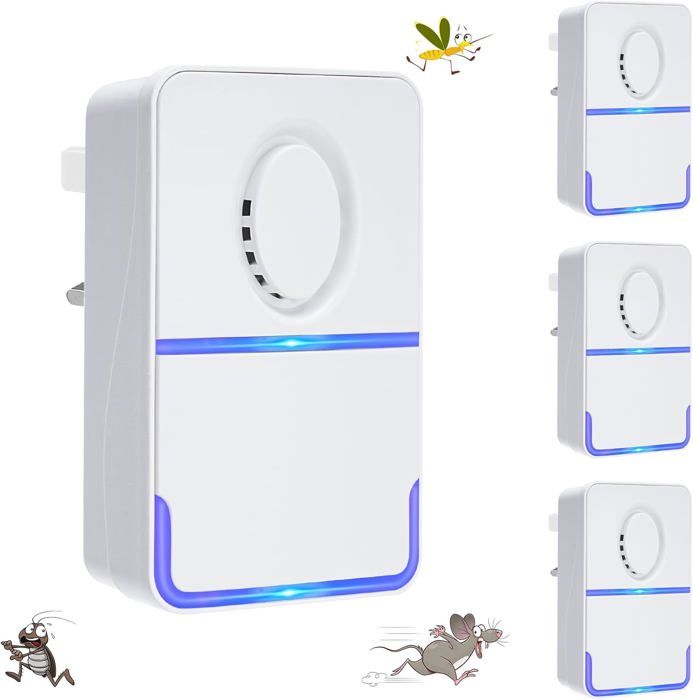 Anti Souris Sans Produits Chimiques Répulsif Ultrason Souris LOFFU - 360° Sans Produits Chimiques Protection Maison Nuisibles Anti Rongeur Ultrason Intérieur 4 Pack Ultrason Souris Et Rats,Appareil Ultrason Souris Et Rats Appareil Souris R Pulsif Ultrasons Pour R Pulsif Int Rieur Dispositif Anti Insectes Moustiques Cafards Rats Fourmis Ar Répulsif Souris Ultrason Attendez-vous à des résultats significatifs dans un délai de 2 à 4 semaines, cela dépend de la gravité de l’infestation souris et insectes. 【Ultrason Repulsif Souris Efficace】Le repulsif souris envoie des ultrasons pour désorienter et perturber les nuisibles, les empêchant ainsi de se nourrir ou de nicher chez vous. 【Large Zone de Couverture】Chaque repulsif souris et rats ultrason couvre efficacement jusqu'à 150 m² (1600 pieds carrés). Grâce à l'échographie avancée et au contrôle des vagues en dents de scie, vous pouvez tuer les insectes, les. souris, les cafards, les moustiques, les fourmis et les araignées Étant donné que les ultrasons ne pénètrent pas les murs et les objets solides, utilisez-en un par pièce pour vous assurer que chaque coin de votre maison est exempt de parasites Facile à utiliser : il suffit de brancher le répulsif dans la prise et de le laisser fonctionner. Le répulsif repousse instantanément les nuisibles sans les tuer. Aucune pile n'est nécessaire, ce qui vous permet d'économiser beaucoup de remplacement Installez-le à une hauteur de 10-30 inches(25., 4-76., 2 cm) pour les nuisibles rampants et de 30-50 inches(76., 2-127 cm) pour les insectes volants Dites adieu aux souris, rongeur, moustiques, rats, araignées, puces, insectes, mouches, cafards et fourmis