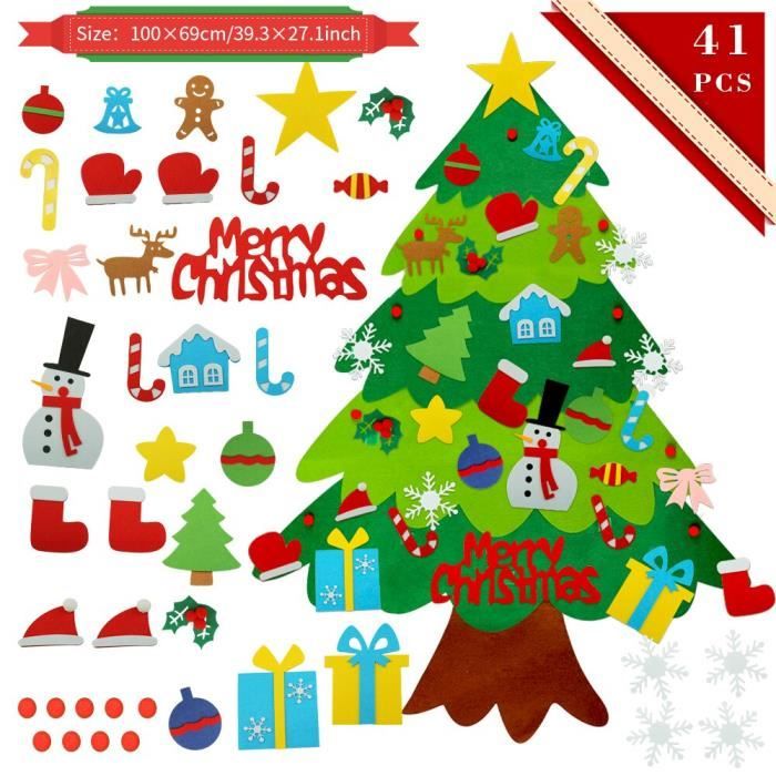 Sapin De Noël Montessori Lumineux Gizayen Feutre Arbre De Noël, Sapin De Noël Décoration Vitrine DIY Feutre Avec Ornements Détachables Cadeaux De Noël Pour Noël Pour Les Enfants Porte-Manteau Décoration Murale De Facile à manipuler : simple à coller les ornements sur les attaches, l'arbre de Noël est facile à attacher votre arbre de Noël et à l'accrocher au mur avec un crochet ou un clou, puis à enrouler la guirlande lumineuse autour de votre arbre, qui est alimenté par 2 piles AA. Ensemble d'arbre de Noël en feutre : avec 21 ornements détachables (Père Noël, bonhomme de neige, flocon de neige, chaussettes de Noël, chapeau de Noël... Le Sapin De Noël Lumineux Montessori est un arbre de Noël en feutre de haute qualité, durable et sans mauvaises odeurs. Avec ses 30 LED et 21 ornements détachables, il est parfait pour créer une ambiance festive NoteNous avons plié l'arbre pour le transport. (Piles non incluses), vous pouvez donc éclairer l'arbre en feutre. Décoration de sapin de Noël - VGEBY - Arbre en feutre DIY - 100 x 70 cm Ornements de différentes couleurs : le sapin de Noël en feutre est un moment pour offrir et partager, bon pour nous rappeler que l' de la saison est tout au sujet de l'amour et de la d'être avec vos proches, créant une atmosphère festive incroyable. Arbre de Noël en feutre pour Veuillez noter que l'ensemble de sapin de Noël en feutre est emballé dans un emballage pliable. Décorations murales de Noël Les décorations d'arbre de Noël sont les décorations de Noël fantaisie les plus recherchées, les décorations de porte, les décorations murales. Il peut également décorer une chambre d'enfant, un salon ou certains lieux commerciaux tels que les supermarchés, les vitrines, les hôtels, etc. Sapin de Noël à suspendre pour mur, maison, extérieur, magasin, supermarché, bureau, dortoir, porte de classe, bar, hôtel. Excellent ensemble d'arbres de Noël en feutre à faire soi-même : l'ensemble d'arbres de Noël en feutre est idéal pour les décorations de fêtes de Noël, comprend 21 ornements détachables (Père Noël, bonhomme de neige, flocon de neige, chaussettes de Noël, chapeau de Noël, bonbons, cloches, etc. Propriétés:Nom : ensemble d'arbres de Noël en feutre . Lorsqu'il arrive, vous pouvez paraître plié ou légèrement inégal, en le pressant ou en le repassant, puis en l'accrochant à un mur ou à une porte.