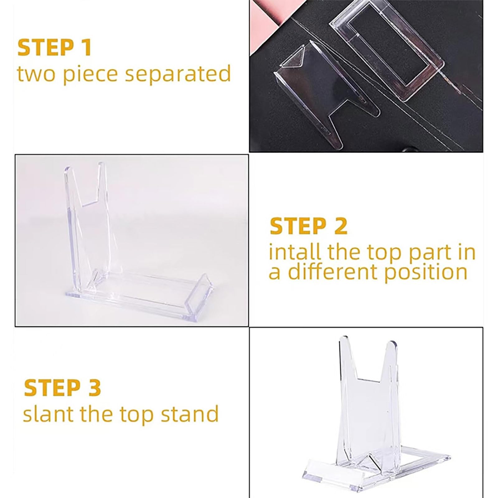 ✔ Design pratique : La face avant inversée du presentoir améliore non seulement l'esthétique générale, mais sécurise également les objets et les empêche de bouger. 12 Pcs Support De Présentation Réglable Transparent Supports,11x10.5x6 Cm,Porte Assiette,Support Assiette Decorative,Présentoir Livre,Support Plexiglass Transparent,Pour Menu,Publicité,Assiette,Photo Son design transparent offre une transparence cristalline qui met parfaitement en valeur vos affaires et s'harmonise avec celles-ci. Le présentoir à assiettes est autonome et peut être placé sur une table sans accessoires supplémentaires. Il convient également aux maisons, salons professionnels, musées, commerces, écoles, bureaux, etc. Il peut accueillir assiettes, photos, livres, œuvres d'art, cadres, petits livres de cuisine, chevalets, cartes, téléphones portables, objets de collection, miniatures, etc. Cette conception facilite le rangement de vos affaires. 12 PCS Support De Présentation Réglable De Plaque Affichage En Plastique Chevalets Transparents Presentoir De Livre Pour Menu Publicite Assiette 98764050 Lorsqu'ils ne sont pas utilisés, ils se replient à plat pour un rangement pratique. ✔ Support à assiettes réglable : Le support est réglable, vous permettant d'ajuster la distance entre les supports grâce aux fentes. Ces deux parties s'assemblent facilement sans outils ; il suffit de les glisser en place. Le support pour assiettes peut tenir debout tout seul, de sorte que rien d'autre n'est nécessaire pour le poser sur un bureau. Et affichez vos objets de collection dans un angle de vue parfait. Décoration parfaite pour la maison: Ce présentoir transparent est très approprié pour afficher des objets 2 Pcs Support Cadre Photo, Porte Assiette Decorative, Support Assiette Decorative Support Assiette A Poser Reglable Pliable Petit Chevalet Assiette Pour Afficher Des Photos Images Recettes 18 X 14 Noir 90503767 ✔ Facile à installer et à retirer : Le paquet contient 12 supports à assiettes en acrylique.