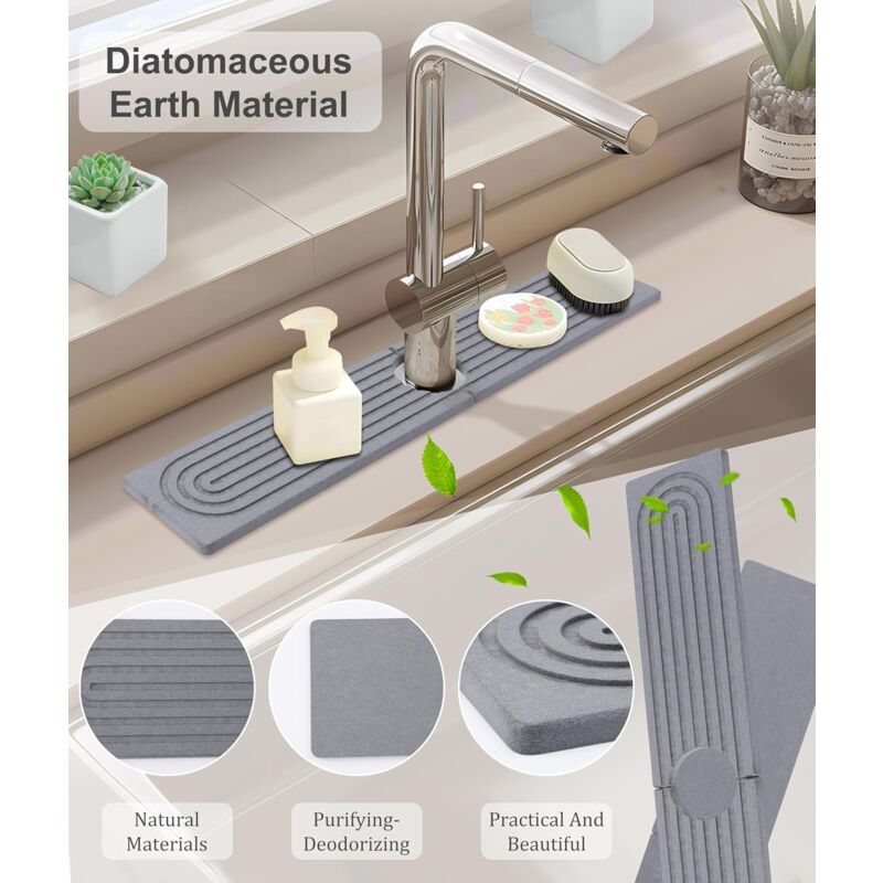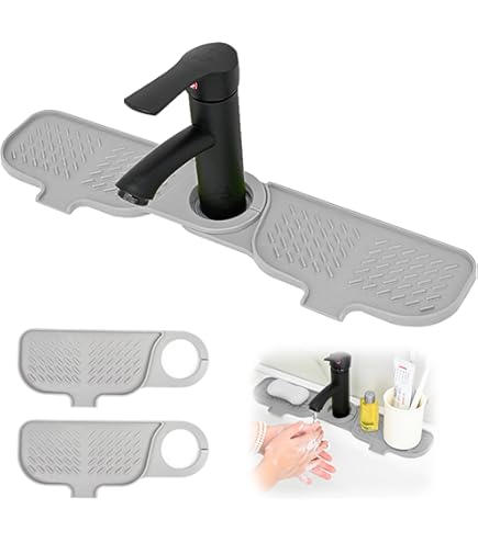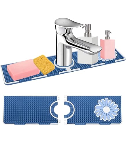 Tapis de Robinet en Silicone, Protection Contre Les Tapis de robinet d'évier avec pente pour évier auto-drainant, protection anti-éclaboussures en silicone comme porte-savon et porte-éponge, poignée de robinet, plateau récupérateur d'égouttement pour comptoir de cuisine, salle de bain (abricot Taille : les dimensions du tapis sont de 45141,7 cm, avec un design central de pétales avec un diamètre de 4 cm, personnalisable pour s'adapter aux robinets d'un diamètre inférieur à 6,5 cm. Tapis de robinet d'évier avec pente, protection anti-éclaboussures en silicone auto-drainant, plateau multifonction pour cuisine et salle de bain (beige) Tapis d'évier multifonction : plus qu'un simple tapis de séchage pour robinet, ce pare-éclaboussures d'évier sert également d'organisateur pour les tasses, le savon pour les mains et le savon à vaisselle. Ce tapis de protection anti-éclaboussures d'évier peut être utilisé dans les éviers de cuisine, les salles de bains, les fermes, les caravanes, les cafés, les toilettes et plus encore Matériau en silicone : fabriqué à partir de silicone de qualité alimentaire, ce tapis de robinet en silicone est doux, réutilisable et durable. Ce cache-robinet de cuisine convient non seulement aux salles de bain et aux éviers, mais permet également de ranger brosses, savon, savon pour les mains et... Le nettoyage est un jeu d'enfant : rincez à l'eau ou mettez-le au lave-vaisselle, ce qui vous permet d'économiser du temps sur le séchage et l'essuyage des tapis humides. Plus besoin de vous soucier que l'eau persiste sur le tapis d'évier ou le comptoir, ce qui entraîne des taches sur le robinet.