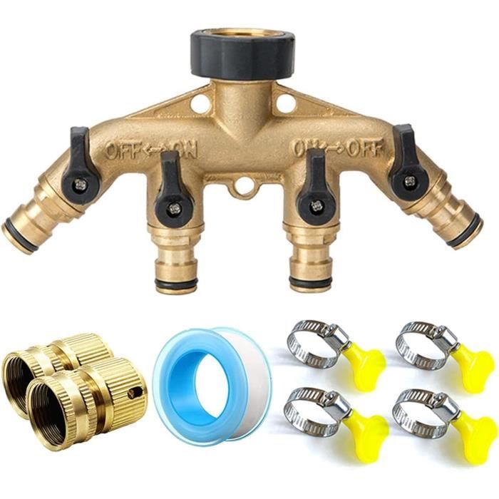Débit d'eau réglable et réglable Répartiteur réglable à 4 voies pour tuyau d'arrosage Raccord de robinet avec adaptateur pour filetage intérieur ¾ ou 1 Accessoire Jardin Division Débit Eau VBESTLIFE Répartiteur De Tuyau à 4 Voies Séparateur De Tuyau D'arrosage Distributeur Arrosage 4 Voies Répartiteur de tuyau d'arrosage 4 voies en métal. Code . 001-5750. Numéro d'article. 9009DI. UPC Inverseur 4 voies : convertissez facilement un seul tuyau d'arrosage en quatre sorties d'eau séparées, vous permettant d'effectuer efficacement plusieurs tâches dans le jardin Clarinette Arrosage Cikonielf Séparateur D'eau à 4 Voies Répartiteur De Tuyau En Laiton à 4 Double Robinet Exterieur