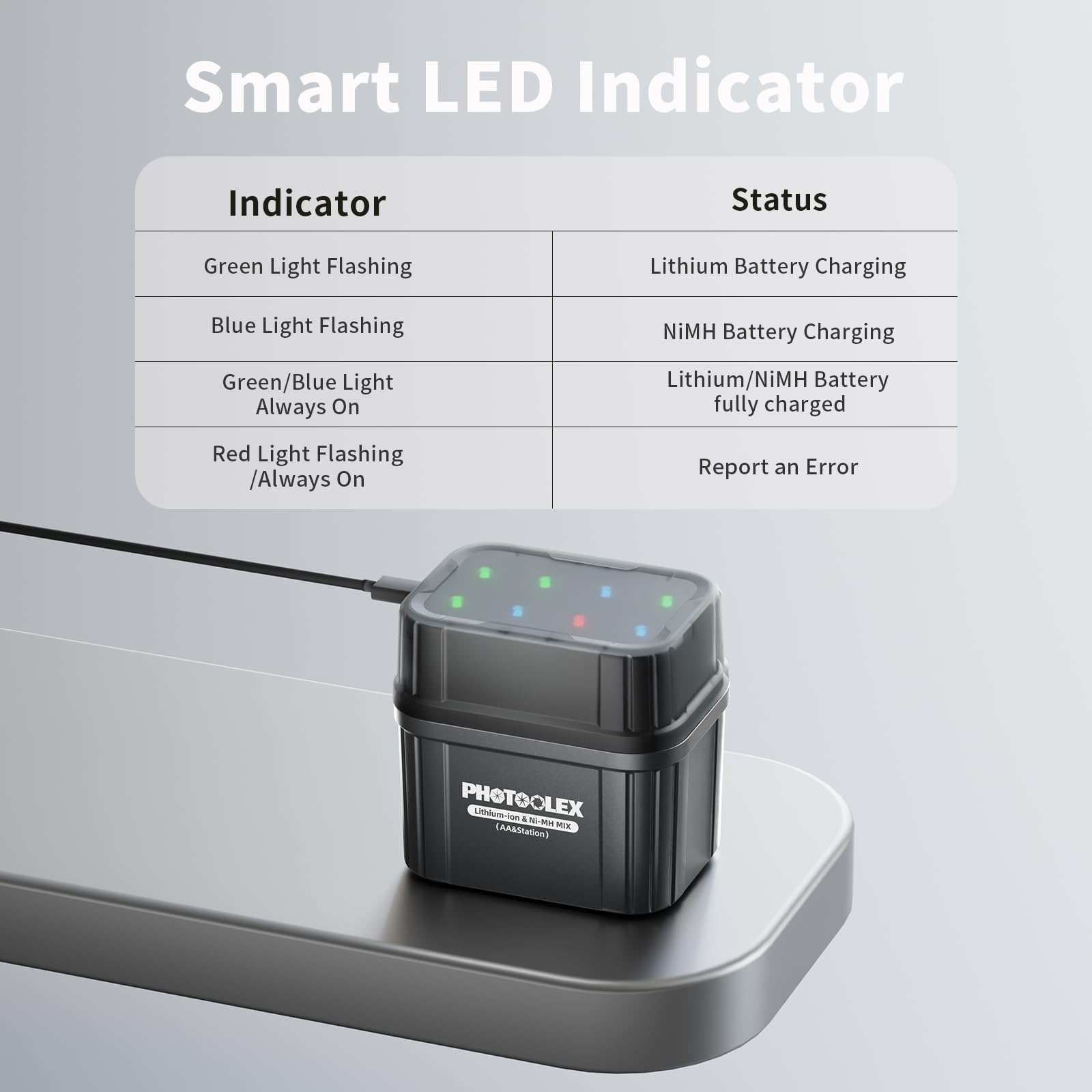 Un voyant rouge fixe indique une source d'alimentation incompatible/un câble endommagé/une température élevée ou basse. Il faut 3 à 4 heures pour charger complètement une batterie lithium et plus de 6 heures pour une batterie NiMH Besoin de piles rechargeables pour alimenter vos appareils électroniques ? Optez pour les piles rechargeables AA lithium 1.5V avec chargeur Chargeur intelligent LCD pour batteries de 1,5 V. · Batterie rechargeable AA 1,5 V. · Batterie à tension constante de 1,5 V. · Durée de vie Un voyant rouge clignotant indique que la batterie ne peut pas être chargée ou qu'elle est en charge avec une surintensité, une surtension ou une sous-tension Piles Aa Piles Lithium Rechargeables AA - Lot De 8 Avec Chargeur Pile lithium AA haute puissance 1,5 V : La technologie avancée de la pile lithium offre une plus grande capacité, une durée de vie plus longue et une puissance de sortie accrue, ce qui en fait un choix idéal pour les produits à forte consommation, tels que les Xbox, Blink (non compatible avec certains modèles), les appareils photo numériques et les jouets. Ce que vous obtenez : 4* PHOTOOLEX lithium AA piles; 4* PHOTOOLEX NiMH AA piles; 1* chargeur hybride; 1* câble USB C vers USB C; 1* manuel d'utilisation; garantie de 12 mois Chargeur Piles AA Lithium NiMH Piles Rechargeables Lithium Lot De 4 Piles AA Rechargeables CITYORK - 3000 MWh, Chargeur LCD, Micro USB - Pour Appareils Quotidiens Piles AA Lithium Rechargeables Pile Rechargeable Aa Indicateur LED intelligent : Le voyant clignote en vert/bleu pour indiquer que la batterie Li-Ion/NiMH est en charge, et un voyant fixe indique qu'elle est complètement chargée. Chargeur rapide de piles AA: Ce chargeur intelligent utilise une entrée USB-C et prend en charge les batteries externes jusqu'à 5V/3A, les ordinateurs, les chargeurs de téléphone portable, les chargeurs de voiture et les adaptateurs muraux USB. Grâce à un microprocesseur, il gère 8 emplacements de charge de manière indépendante, évitant ainsi les surcharges, les surintensités, les surtensions, les surchauffes et les courts-circuits.
