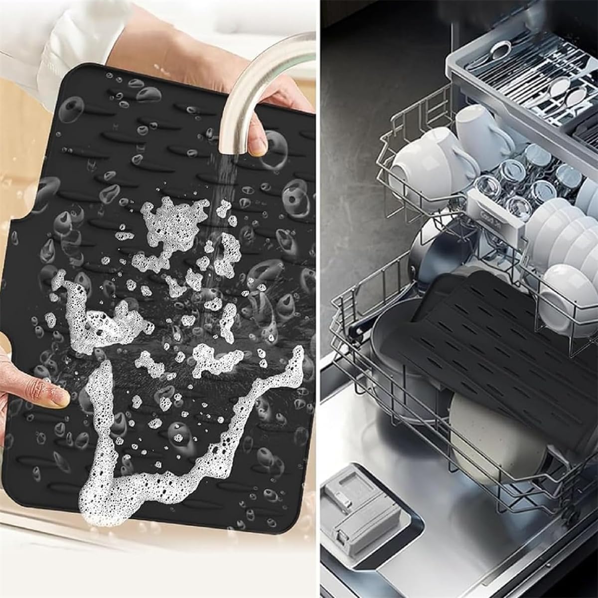 This no-spill silicone worktop saver is flexible and can be rolled or folded for easy, space-saving storage when not in use. Multi-Functional Kitchen Essential:More than just a drying mat, this silicone thickened non-slip insulation dish drying mat serves as a fridge liner, baking mat, coffee station mat, or non-slip surface for cutting boards. No-Spill Silicone Worktop Saver – Heat-Resistant & Non-Slip Mat for Drip-Free Drying, Non-Slip Kitchen Mat with Built-in Slope Drain Lip for Kitchen Sink (1 pcs silicone drying mat the hygienic choice for drying dishes, ensuring a clean, healthy kitchen environment. Fast Drying & AntiSlip Design:This no-spill silicone worktop saver promotes efficient drainage and airflow, allowing water to evaporate quickly while keeping your countertop clean and dry. Sloped Design for Fast Drainage]Built-in slope guides water directly into the sink, keeping your countertop dry and mess-free [Food-Grade Silicone Material]Made from food-grade silicone-safe, durable, and heat-resistant up to 450°F Easy to Clean & SpaceSaving Storage:Cleanup is effortless—just wipe it down or place it in the dishwasher. -------------------- Welcome To Our Shop -------------------- No-Spill Silicone Worktop Saver – Heat-Resistant & Non-Slip Mat for Drip-Free Drying, Non-Slip Kitchen Mat with Built-in Slope Drain Lip for Kitchen Sink Specification: Name: No-Spill Silicone Worktop Saver Material: Silicone Color: Gray Size:As Shown In the Figure Package Included: 1/2 Pcs * No-Spill Silicone Worktop Saver – Heat-Resistant & Non-Slip Mat For Drip-Free Drying 1/2 Pcs Kitchen towels Note: 1., Due to different display and lighting effects, the actual color of the item may be slightly different from the color shown on the picture., 2., If you have any questions, please feel free to send us an email, we will give you a satisfactory reply within 24 hours., reply within 24 hours. Silicone Dish Drying Mat With Drain Lip No-Spill Silicone Worktop Saver Heat -Resistant & Non-Slip Mat For Drip-Free Drying,Sloped Silicone Drying Mat,Multifunctional Foldable Drainage Pad With Built-in Slope Drain Lip For Kitchen Sink