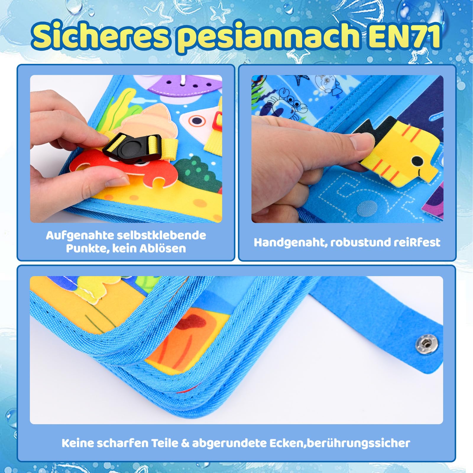 En tant que jouet montessori à partir de 1 an, il favorise le développement autonome de votre enfant. Les activités adaptées à l'âge de notre jouet éducatif à partir de 1 an favorisent le développement naturel de votre enfant. Notre jouet en feutre marin à partir de 1 an combine plaisir de jeu avec une éducation précoce et favorise ainsi des domaines de développement importants. With Ocean Theme, 3D Felt Occupation Book, Educational Sensory Toy, Silent Book for Boys Girls Age 1 2 3 Years and Up Learning Activities for Toddlers Que ce soit en voiture, en avion ou au restaurant, ce livre silencieux occupe votre enfant pendant des heures. Compagnon de voyage parfait : notre carnet busy book d'animaux de mer est le compagnon idéal pour les déplacements. 【Aventures océaniques 3D pour les petits explorateurs】Plongez dans notre livre sur le thème de la mer à partir de 1 an ! Des poissons colorés aux hippocampes sympathiques, chaque élément de ce livre à partir de 1 an raconte sa propre histoire. Le jouet Montessori à partir de 1 an encourage l'apprentissage et la découverte indépendants. En tant que sac de motricité compact, il se glisse dans n'importe quel sac de voyage et est toujours à portée de main. Ce jouet en feutre marin à partir de 1 an transforme la chambre de votre enfant en un monde sous-marin coloré. conférence Roux Réapprovisionnement livre jouets en bois à faire soi même bénévo Chaque page raconte une nouvelle histoire de la mer profonde et stimule l'imagination de votre enfant. Livre Silencieux Apprentissage Tout-petit Avec Thème Océan, Livre D'occupations 3D En Feutre, Jouet Livre En Feutre Thème Océan Notre livre sur le thème de la mer à partir de 1 an emmène votre enfant dans un monde sous-marin magique plein de découvertes et d'aventures d'apprentissage. Le jouet sensoriel à partir de 2 ans stimule l'imagination et favorise le développement cognitif. Le busy book à partir de 1 an se glisse dans n'importe quel sac à langer et est toujours prêt à l'emploi. Ce livre busy book unique animaux de mer a été spécialement conçu pour les explorateurs curieux dès la première année de vie. Détails du produit : Dimensions (L x l x h) : 20 x 4 x 23,5 cm. Cadeau idéal pour les tout-petits : ce livre pour bébé est le cadeau parfait pour les enfants à partir de 1 an. En tant que jouet éducatif d'animaux marins à partir de 2 ans, il favorise les sens de manière ludique et fait de votre enfant un explorateur marin. En tant que jouet en feutre pratique pour les déplacements, ce livre pour bébé transforme chaque voyage en une aventure passionnante. Ce livre sur le thème de la mer à partir de 1 an n'est pas seulement un jouet, mais un fidèle compagnon pour les années de développement les plus importantes. Livre Silencieux, Montessori Jouet Éducatif Préscolaire,Jouets... Poids : seulement 100 g - parfait pour les petites mains Matériau : feutre de haute qualité Âge recommandé : à partir de 1 an Ce livre d'activités sous-marin est plus qu'un simple jouet, c'est une expérience éducative. Que ce soit pour de longs trajets en voiture ou des temps d'attente chez le médecin, ce jouet silencieux est le compagnon idéal pour les petits esprits agités. Ce livre busy book animaux de mer apporte non seulement du plaisir, mais crée également de précieux moments d'apprentissage qui aident votre enfant dans son développement. Sécurité et qualité supérieure : notre livre sensoriel océan est fabriqué en feutre doux sans bords tranchants.