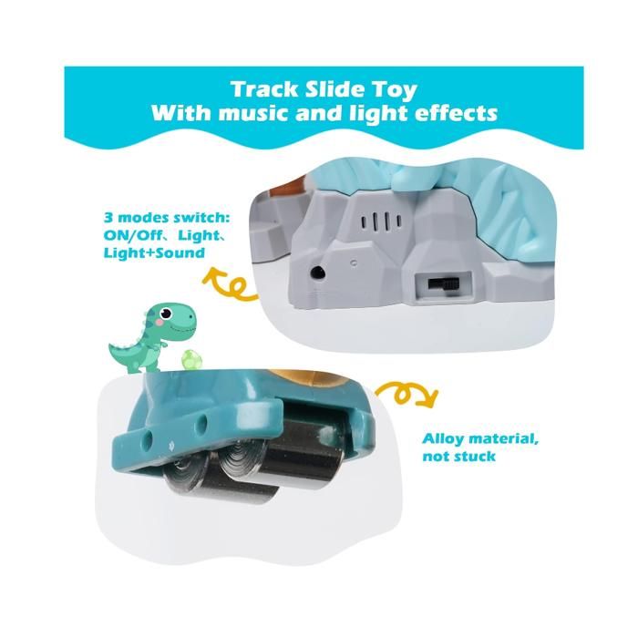 Set d'aventure de toboggan dinosaure ce jouet de montagnes russes dinosaures contient six petits dinosaures. Les petits dinosaures peuvent glisser librement sur le toboggan À la fois intéressant et éducatif, il stimule et développe la motricité des enfants. Jeu éducatif Escalier Musical Lumière Piste De Course De Dinosaures, Jouet De Montagnes Russes De Dinosaure, Jouet Musical D'escalade électrique, Piste De Course De Dinosaure, Cadeau Pour Tout-petits, Garçons Et Filles à Partir De 3 Ans Puzzle Dinosaure 5 Ans Veuillez consulter les instructions et la vidéo, ou contacter le service client ; nous nous ferons un plaisir de vous aider à résoudre le problème !, ) Toutes les pièces sont rondes et lisses, sans arêtes vives, et sans danger pour les enfants. Cadeau idéal : Ensemble de jouets à glissière, adapté aux enfants de 3 ans et plus. Ce set unique transporte les enfants dans un monde jurassique fantastique, avec ses dinosaures rugissants, volants, marcheurs, et même un petit dinosaure tenant... Circuit Montagnes Russes Dinosaures à Construire - Kit HOGOKIDS Avec Piste Vehicule Dinos Jungle Et Oeufs Jouet Creatif Enfant 8 12 Ans Développe la motricité des enfants : Avec ce jouet de piste, les bébés peuvent assembler plusieurs blocs pour construire une scène complète. Matériaux de haute qualité : Fabriqué en ABS, sûr et respectueux de l'environnement. En jouant, les yeux de l'enfant suivent le dinosaure, ce qui favorise la résolution de problèmes, la coordination œil-main, la concentration et la logique.