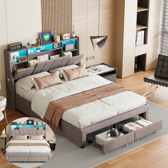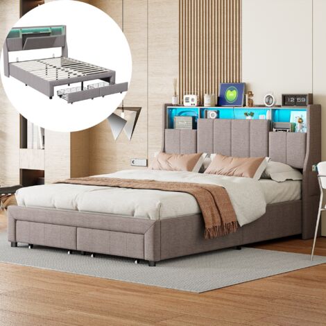 【Rechargez & Restez Connecté】Ne tombez jamais en panne de batterie avec la station de chargement intégrée du lit rembourré. Achetez Lit 160x200 Éclairage LED&Multiprise USB-C &USB-A 4 Tiroirs 2 Poches de Rangement Cadre de Lit avec Sommier à Latte Tête de Lit Gris sur , bénéficiez des promotions diverses avec une livraison gratuite sur tous les produits Ce cadre de lit moderne et élégant illumine votre monde avec son éclairage LED ambiant éblouissant disposant de plus de 60 000 couleurs. 【Rangement sans Effort】Découvrez la commodité de ce cadre de lit avec rangement. Le design sans bruit assure un sommeil paisible et ininterrompu. 【Support Solide pour des Nuits Paisibles】Profitez de la tranquillité d'esprit avec une construction fiable. La somptueuse tête de lit à ailes n'est pas seulement pour le style; c'est un havre de commodité avec un rangement intégré et des poches pour vos essentiels. Lit Design Moderne Chambre MOTUZP - Lit Double 160x200cm Avec LED Et USB | Tête De Lit Rembourrée Cuir PU | Rangement Intégré Lit Rangement Sous Lit Avec une étagère de rangement intégrée et 2 poches pratiques, la tête de lit permet un accès facile aux objets comme les livres ou les téléphones. Contrôlez les lumières via une application ou laissez-les danser au rythme de votre musique pour un effet spectaculaire. Synchronisez vos lumières avec la musique ou la voix pour une expérience immersive. Livraison offerte (116) · Prix 11.79 EUR - 1085.98 EUR · Note des clients 4 et plus / 3 et plus · Couleur Gris / argent / Beige / Noir / Blanc / Rose / Vert / Bleu... Sommier 180x200 Lit 160x200 Cm, Avec 4 Tiroirs De Rangement, éclairage LED Orientable Lit 160x200 Avec Sommier Restez alimenté avec la station de chargement intégrée équipée pour les appareils modernes.