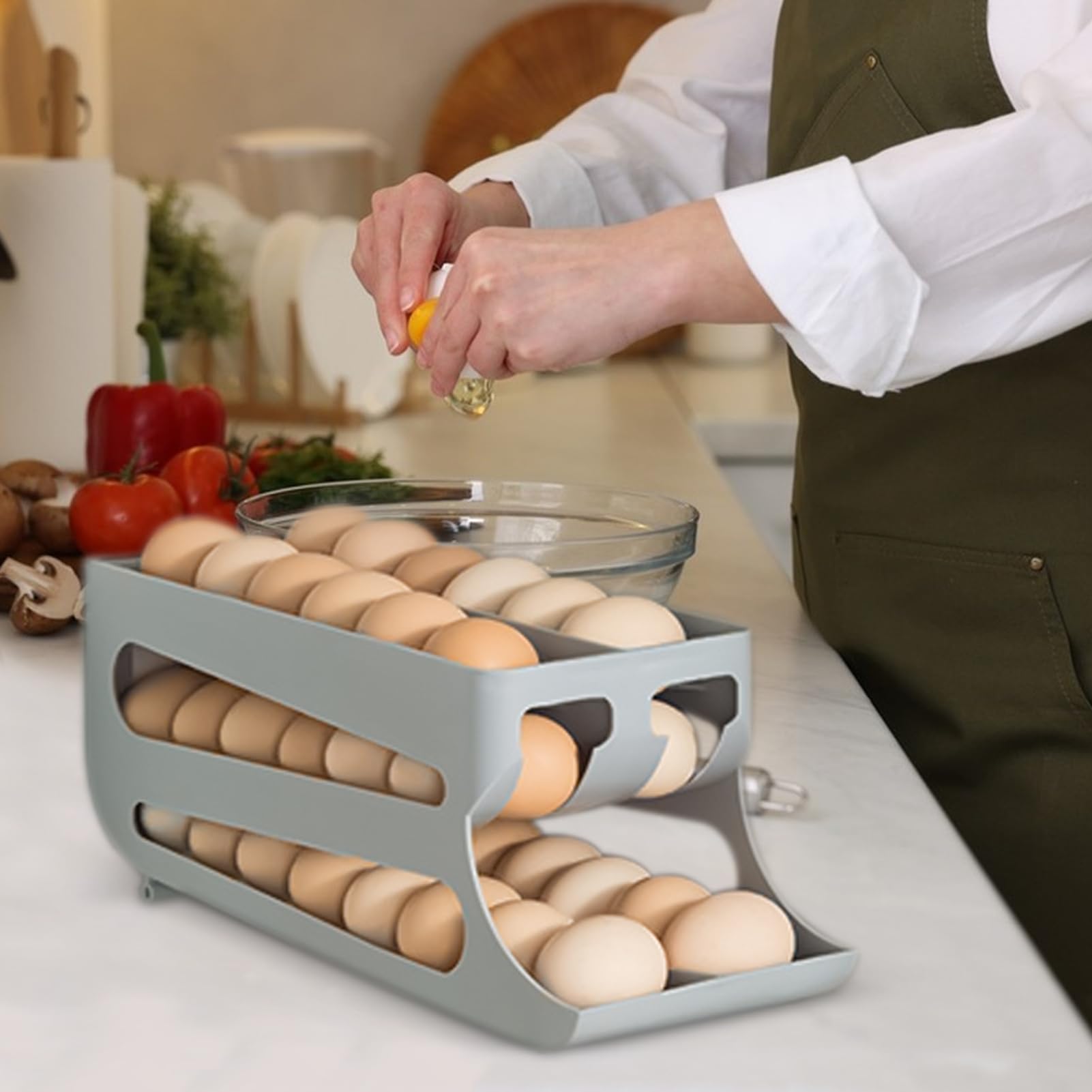 lazywoodpecker Rangement d'œufs pour réfrigérateur, organiseurs de Organisateur Automatique De Plateau à œufs 1 Pièce, Rouleau à œufs Pour Réfrigérateur Peu Rangez soigneusement les œufs dans un support à 4 couches capable de contenir 30 œufs. Cette boîte réutilisable offre un roulement automatique pour un accès sans effort et un design peu encombrant Son design polyvalent s'adapte facilement à tous les espaces.[Large application]Ce récipient compact pour œufs convient à de nombreux environnements : réfrigérateurs de bureau, mini-réfrigérateurs, congélateurs de cuisine, placards, garde-manger, camping-cars et même tables de pique-nique