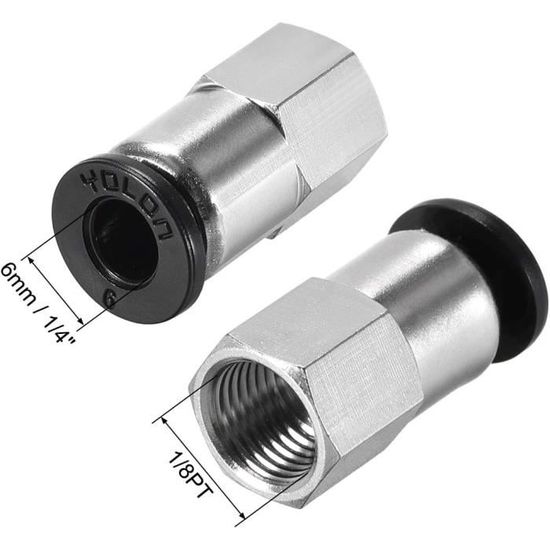 PATIKIL G1/8 Pression 3mm OD Tube Connexion Raccords, 2 Paquet Droit Couplage Adaptateur Pour Gaz G1/4 Femelle SOURCING MAP Droit Pneumatique Connexion à Poussée Rapide Raccord 1 Raccord Pneumatique 6mm 【AVANTAGE】 - Résistance à l'abrasion, légèreté et résistance à l'écrasement et à la fissuration, résistance à la compression et à la corrosion, bonnes performances d'étanchéité et longue durée de vie. Caractéristiques du produit:Nom du produit : appuyer pour connecter les raccordsModèle : PCF6-02Poids net : 53 gCouleur : doré, bleuMatériel : Plastique,LaitonPression de fonctionnement : 0-1 MPaTempérature de fonctionnement : 0 à 60 degrés Celsius ;Type de filetage femelle : Type GType : Connecteur à filetage droit femelleTaille du filetage : G1/4Taille du tube (OD) : 0,24 / 6 mmDimension : 25 mm x 15 mm / 0,98 pouce x 0,59 pouce (L x W)Contenu de l'emballage : 5 pièces x raccords rapidesDescription:1., Le raccord rapide est conçu pour les tubes en polyuréthane ou en nylon. Si vous ne parvenez pas à le retirer, cela signifie qu'il a été connecté., 4., Lorsque vous desserrez le tube, vérifiez d'abord qu'il n'y a pas de pression dans le tube, puis appuyez uniformément sur l'embout vers le bas. SOURCING MAP Raccord Laiton Adaptateur tuyau droit mâle G1/4 à mâle G1/4 5Pcs - Bricolage 【BON DESIGN】 - Raccord de tube enfichable à une extrémité et fil G femelle à l'autre extrémité. BON DESIGN] - Raccord de tube enfichable à une extrémité et fil G femelle à l'autre extrémité. Un bon capuchon de libération peut résister à une pression plus grande et plus forte sans trébucher Un bon capuchon de libération peut résister à une pression plus grande et plus forte sans trébucher. Même après l'installation, la direction du tube peut être modifiée librement., 2., Connexion de tube Push-to-connect à une extrémité et filetages G femelles à l'autre extrémité., 3., Un bon capuchon de déverrouillagee peut résister à une pression plus grande et plus forte sans trébucher., 4., L'anneau de dégagement elliptique aide à connecter le tube facilement manuellement, aucun outil spécial n'est requis., Monté:1., Coupez le tuyau à plat, sans pente., 2., Lors de l'insertion du tuyau dans le joint, il doit être inséré jusqu'à l'extrémité, sinon il pourrait y avoir une fuite., 3., Après avoir branché, essayez de retirer le tube.