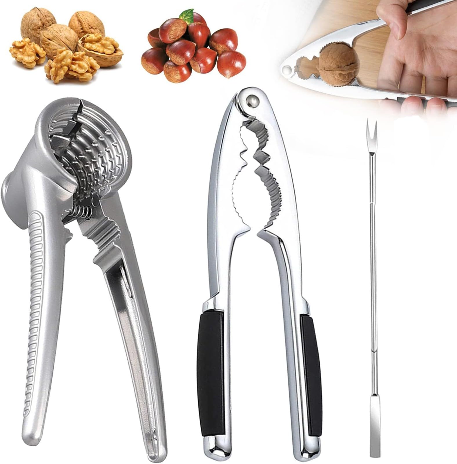 Casse Noix Sans Effort DBAILY Casse Noix Métallique Pour Noix, 2pcs Casse-Noisette Casses Noix Avec Poignée Anti Glissante Pour Noix Et Fruits De Mer Casse- Noisette Lourd Écrou Noix De Pécan Noyer Outil Il peut souvent ouvrir rapidement la coque dure des noix, ce qui vous fait gagner du temps lors du décorticage. Casse-noix manuel en acier inoxydable, outils de c... – Grandado Maintenez la noix en place et appliquez une pression uniforme sur la poignée. La coque se cassera facilement, laissant l'amande intacte.[Taille Ajustable]Ce casse-noix est ajustable pour s'adapter aux noix de différentes tailles et peut casser celles jusqu'à 45 mm de diamètre Haute dureté, fabrication exquise, plus de résistance à la corrosion, pas facile à rouiller, il ne se cassera pas ou ne se déformera pas lors d'une utilisation quotidienne. Il convient également aux fruits de mer, au homard, aux moules, aux huîtres et aux coquilles de crabe. Brou De Noix Casse-Noix Multifonction Métal - Levier Anti-dérapant Durable et Pratique : Conception des casse-noix est très flexible et peut être dépliée à un grand angle à volonté, ce qui rend le nettoyage très simple. Les bords sont si lisses que votre paume ne sera pas blessée même sous une forte pression. Il est également très pratique à transporter en voyage ou en camping. Vous pouvez le trouver immédiatement lorsqu'il est placé avec d'autres ustensiles de cuisine, pratique et pas facile à perdre. Lorsque les casse-noix multifonctionnels sont combinés, il y a des espaces à l'avant et aux extrémités afin qu'ils ne se heurtent pas et que le risque de pincement soit minimisé. Structure Robuste : Casse-noix avec 2 évidements différents et effet levier pour plier des écrous de différentes tailles sans trop d'effort. Conception Ergonomique : Cette poignée Casse-Noisette en Métal adopte une conception antidérapante qui peut empêcher de glisser pendant l'utilisation et assurer une prise ferme. Le casse-noix a une taille appropriée et peut être placé dans un tiroir à la maison ou accroché dans la cuisine.