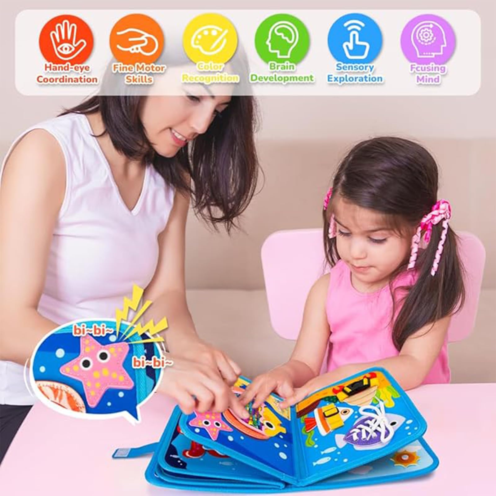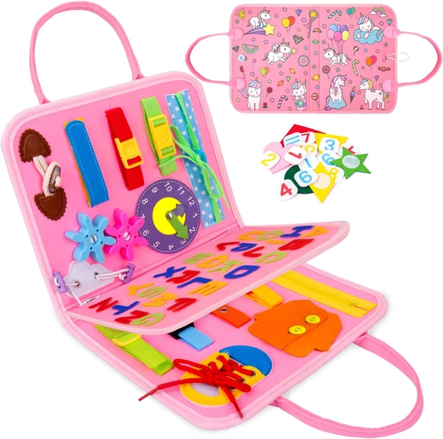 Ce Busy Board qui aideront les enfants dans leur développement d'apprentissage précoce., 2., En plus d'encourager l'apprentissage autonome, ces planches sont conçues pour être partagées. Jouet éducatif Montessori : ce livre silencieux est conçu sur la base des concepts éducatifs Montessori, en mettant l'accent sur le développement de la motricité fine des bébés, de la coordination œil-main, de l'imagination et de la curiosité Profitez d'activités conjointes qui renforcent les liens affectifs et créent des souvenirs durables., 3., Les textures variées et les éléments amovibles invitent les enfants à explorer avec leurs sens, renforçant ainsi leur compréhension tactile et visuelle. 【Facile à Transporter】Le livre éducatif est léger et compact, ce qui en fait un compagnon idéal pour les trajets en voiture, les trajets en avion, les trajets à l'église, la salle d'attente ou tout simplement pour jouer à la maison. C'est une excellente alternative aux smartphones et tablettes pour divertir les enfants. Quiet Book Montessori , Jeux Montessori Jouet Éducatif, Éducatif Livre Activites Feutre Enfant Spécifications du Produit: Matériau:Feutre Dimensions:Comme illustré Couleur:Rose Liste de Colisage: 1 × Livre de Feutre pour Enfants Remarque: 1., Les mesures étant prises à la main, les tailles indiquées peuvent varier de 1 à 2 cm., 3., La celle de l'article peut varier de celle de la photo, en fonction des paramètres d'affichage et de luminosité de votre. Il favorise les compétences pratiques Montessori, la motricité fine, la résolution de problèmes, la pensée logique et la coordination œil-main. 【Idée Cadeau pour les Enfants】Surprenez vos amis ou vos proches avec un cadeau précieux utile pour la croissance de chaque enfant. 【Matériau】Planche Montessori fabriqué en tissu doux et feutre, soigneusement fabriqué à la main, sans arêtes vives, sans coins durs. Busy Board Montessori Jeux Enfant 1 2 3 4 An Fille Garcon Cadeau Ils incluent 26 lettres, 10 chiffres, 10 couleurs, 12 formes, 9 animaux et 9 éléments météorologiques, encourageant la reconnaissance et l'étude. Description détaillée : Description : Ce livre Montessori feutre silencieux redéfinit le jeu de la petite enfance en fusionnant le plaisir avec l'apprentissage fondamental, ce qui en fait un must have pour les tout-petits de 1 à 3 ans. Contrairement aux jouets ordinaires qui n'offrent que du divertissement, ce livre est conçu pour grandir avec votre enfant Caractéristiques principales