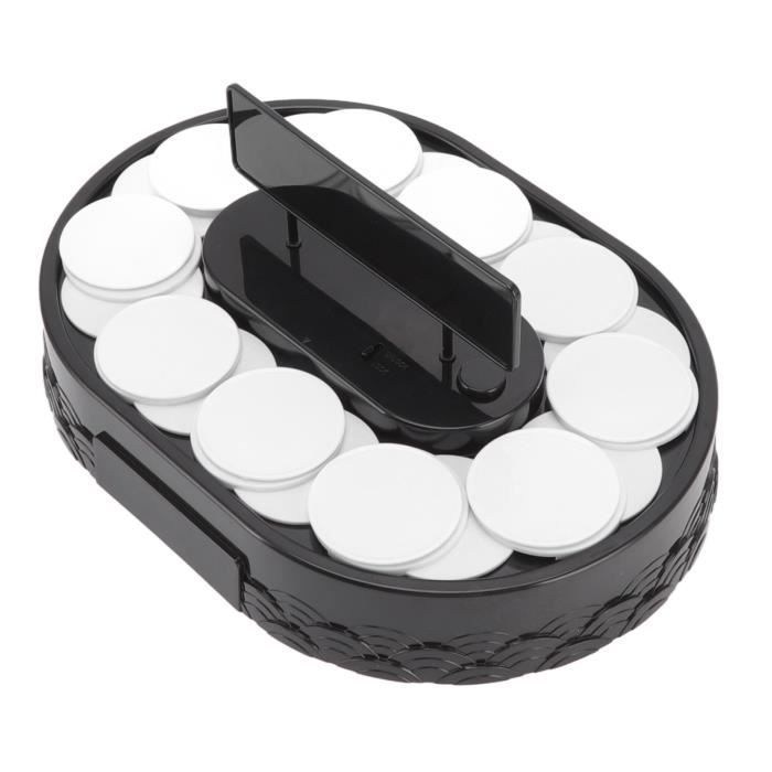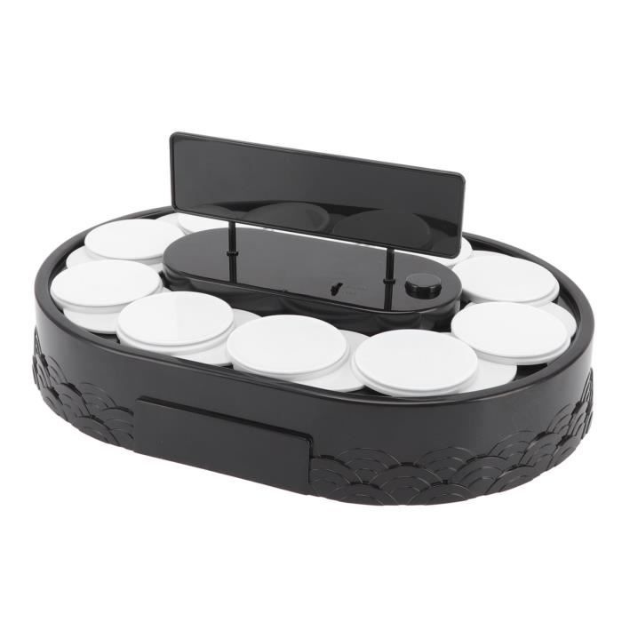 Matériau : fabriqué en matériau ABS de qualité alimentaire, notre plateau tournant pour présentoir à gâteaux est solide et résistant aux rayures, et peut être utilisé pendant des années. LAN Présentoir Rotatif À Sushis Machine À Sushi Rotative Plateau PLATEAU DE PRESENTATION SUSHI TAPAS AMUSE BOUCHE C 5,8 cm / 2,3 en Poids : Environ 776-799 g / 27,4-28,2 oz Mode d'emploi : Installé selon la batterie applicable et allume le commutateur pour tourner Liste des paquets :1 plateau tournant pour machine à sushi10 accessoires de palette1 support1 x autocollant1 accessoire transparentou1 plateau tournant pour machine à dessert 16 accessoires pour plateau 1 support 1 autocollantRemarque : Le bruit de rotation est normal Spécification : Type d'article : Machine à sushis rotative Matériau du produit : ABS Piles (piles non incluses) : 3 piles AA Taille du support non installé : environ 30 x 21 x 6 cm / 11,8 x 8,3 x 2,4 in Taille du petit plateau : diamètre approx. Achetez Plateau tournant à 360° en forme de train de sushi - Plateau de service blanc de 5,2,7 m pour tables rectangulaires - Parfait pour les fêtes, les réunions et les expériences de repas amusantes Facile à utiliser : le plateau tournant automatique est non seulement facile à utiliser, stable et sûr, mais également contrôlé par un seul bouton. Caractéristique :1., Facile à utiliser : le plateau tournant automatique est non seulement facile à utiliser, stable et sûr, mais également contrôlé par un seul bouton., 2., Plusieurs petits plateaux : il existe plusieurs petits plateaux pour contenir vos aliments, pratiques et pratiques à afficher dans les magasins et à la maison., 3., Applicabilité : le présentoir à sushi rotatif peut être largement utilisé pour afficher des macarons, des cupcakes, des desserts, des sushis, des bijoux ou tout ce que vous voulez., 4., Polyvalent : mariage, anniversaire, vacances, pendaison de crémaillère, salon professionnel, promotion publicitaire, bien-être des employés, célébration d'anniversaire, cadeau d'entreprise, commémoration de récompense, planification des relations publiques, conservation des récompenses, etc., 5., Matériau : fabriqué en matériau ABS de qualité alimentaire, notre plateau tournant pour présentoir à gâteaux est solide et résistant aux rayures, et peut être utilisé pendant des années. Machine Rotation Présentation Nourriture Plateau Pivotant De Table D'affichage De Sushi, Présentoir Rotatif Accessoire Pour Fêtes Anniversaire Mariage