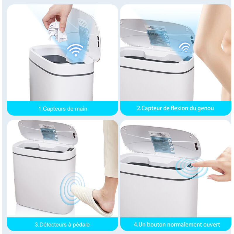 Habitation : avec cette poubelle automatique, vous ne risquez plus le contact avec les déchets, ce qui en fait une poubelle sans contact pour maintenir la propreté dans n'importe quelle chambre, cuisine ou toilettes,poubelle,poubelle à couvercle automatique Poubelle intelligente sans contact 12L Poubelle automatique intelligente, sans contact, p... – Grandado Environnement : la poubelle de cuisine avec couvercle automatique est conçue avec un joint étanche, garantissant que les odeurs désagréables restent à l'intérieur, maintenant un environnement intérieur frais et propre pour votre maison, poubelles intelligentes pour la cuisine, poubelle avec couvercle Poubelle cuisine Son intérieur convient aux cuisines, chambres ou salons très fréquentés, minimisant les déplacements à poubelles Détection par geste, pied ou genou, ouverture rapide en 0,5s, fermeture automatique silencieuse en 5s. Libérez vos mains et profitez d’une utilisation pratique. Maintient le couvercle ouvert pour faciliter le dépôt des déchets volumineux ou pour plusieurs utilisateurs en même temps Pratique : la poubelle à couvercle vous permet d'éliminer les déchets, idéale lorsque vos mains sont pleines ou , ce qui en fait la poubelle de cuisine automatique préférée, la poubelle intelligente pour la chambre, la corbeille à papier pour la chambre Poubelle automatique salle de bain La finition élégante de la poubelle intelligente améliore tout en empêchant les déversements accidentels et en contenant les odeurs désagréables, garantissant commodité et propreté. Poubelle Cuisine Salle De Bain étanche POUBELLE INTELLIGENTE AUTOMATIQUE Avec Couvercle Pour Salle De Jeux De EUR 26,91 - PicClick IT Poubelle Cuisine Salle Bain Anti-odeurs