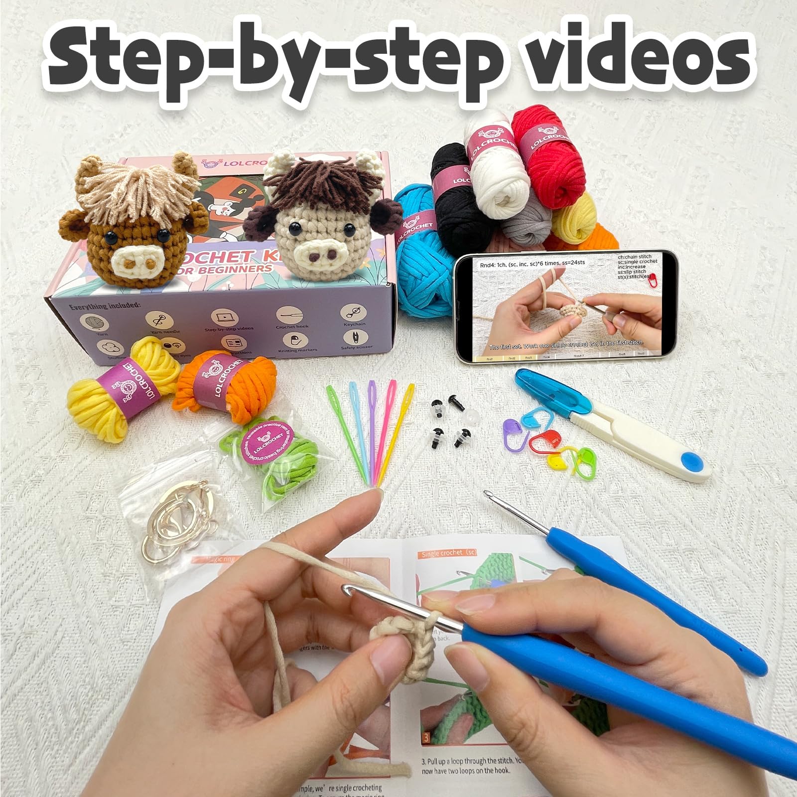 Kit complet de démarrage au crochet : le kit de crochet de vache des Highlands contient tout ce dont les débutants ont besoin : un guide étape par étape, 1 crochet, 6 brins de fil de coton doux, 1 paire de ciseaux, 8 yeux de sécurité, 5 marqueurs de maille, 2 aiguilles à coudre en laine à gros poids, 2 porte-clés et 1 remplissage pour 2 bovins des Highlands. Kits de crochet / Kit de crochetage vache Highland pour débutants, kit de démarrage 1 pièce pour crocheter amigurumi animal avec instructions vidéo étape par étape, kit de tricot facile pour crocheter des poupées comme cadeau de Noël Que vous soyez nouveau dans le crochet ou un amateur de crochet expérimenté, ce kit de crochet de vache des Highlands pour débutants répond à vos besoins. Également un excellent cadeau pour les fans de crochet de bricolage entre amis ou famille Les bovins finis séduisent les enfants comme jouets ou deviennent de beaux cadeaux faits à la main pour les anniversaires/vacances. 40 % de fil supplémentaire dans chaque couleur : nous avons fait un effort supplémentaire en fournissant 40 % de fil pour chaque couleur, afin que les débutants puissent expérimenter et corriger toutes les erreurs qu'ils pourraient commettre sans se soucier de manquer de fil. Kit de crochet parfait pour les enfants, les adultes et les amateurs de travaux manuels. Coloriage vache : Téléchargez et imprimez des dessins gratuits pour enfants Le kit de démarrage idéal pour tous les amateurs de crochet. 3in1 Highland Kuh Babydecke häkeln Muster Schottische Kuh-Decke Kinderwagen Häke Kit Crochet Débutant Enfant Rideau De Porte Vache Des Highlands Pour L'Intimité De La Porte, Rideau Apprentissage Crochet Facile Utilisez vos bovins au crochet comme décoration intérieure de voiture, pendentif de sac, décoration de bureau, décoration de salle de classe ou kit de crochet de vache des hautes terres – vous combinez ainsi le plaisir du bricolage avec des accents personnels et élégants. Kit de crochet polyvalent pour vache des hautes terres : plus que pour apprendre – un choix économique pour vous !, 1., En cadeau : ce kit de crochet pour débutants est le cadeau idéal pour les amis et la famille -- il apporte joie et surprise à vos proches ! Non seulement le crochet est amusant, mais les animaux finis attirent également tous les regards., 3., Comme jouet - Ensemble vache au crochet : les animaux au crochet finis sont doux et parfaits comme compagnon douillet pour les enfants. 2 aiguilles à coudre en laine à gros poids., 2 porte-clés. 1 matériau de remplissage pour 2 vaches au crochet