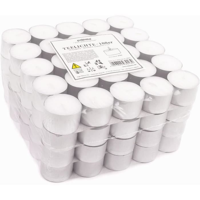 S'adapte aux supports standard : design compact et pratique qui assure la compatibilité avec les photophores, lanternes et centres de table. Flamme propre et sans fumée : conçue pour brûler proprement sans suie ni fumée, créant une atmosphère sûre et apaisante. Parfait pour toutes les occasions : idéal pour les mariages, les fêtes, les sessions d'aromathérapie, ou comme lampe de secours pendant les pannes de courant. Bougies Chauffe Plat Longue Durée Horeca Candles - Bougies Chauffe-plat Blanches - Durée De Combustion 4 Heures - Lot De 50 Bougies Non Parfumées - Lumines Pour Mariage, Décoration, Gastronomie Chauffe Plat Bougie En Cire Durable. Ce Lot De 100 Bougies Non Parfumées Offre Une Durée De Combustion Allant Jusqu'à 3 Heures Chacune, Offrant Une Ambiance Chaleureuse Et UNE LONGUE DURÉE DE COMBUSTION ET UNE FLAMME LUMINEUSE ET STABLE font des chauffe-bougies un élément de décoration idéal, non seulement dans la maison, mais aussi dans les hôtels, les salles de banquet, les salons de massage, les salons de beauté et de nombreux autres espaces privés et publics Bougies Chauffe Plats - KMSTARS - Lot de 100 - Blanches - Inodores