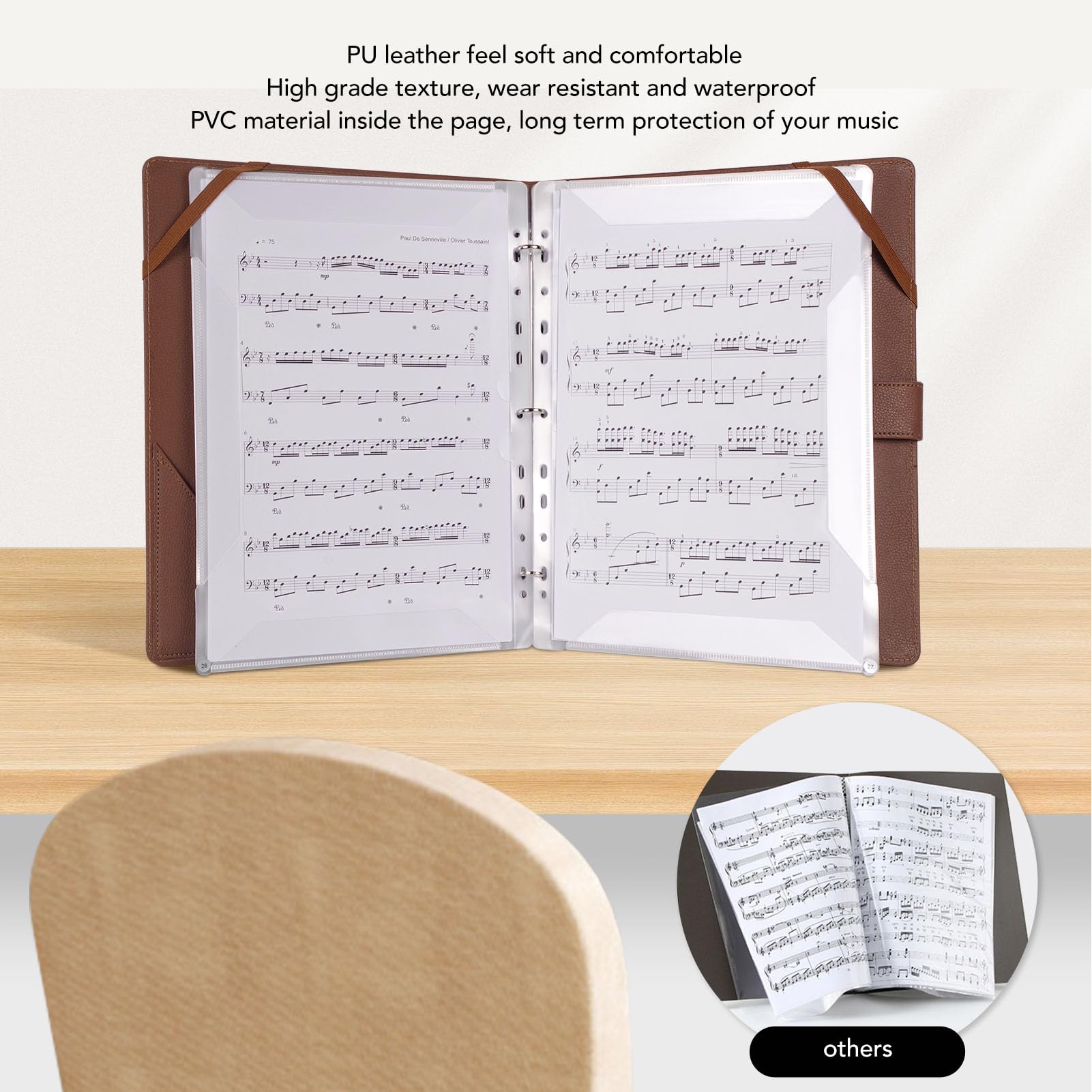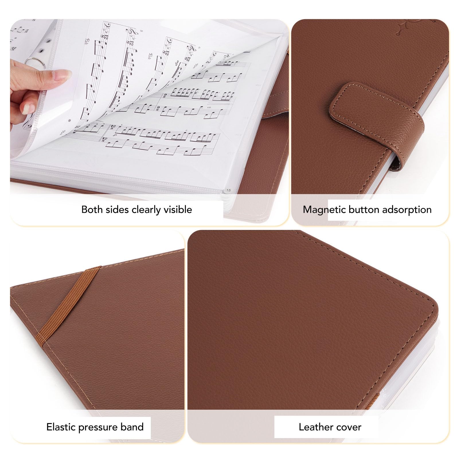Que ce soit dans des environnements professionnels ou au quotidien – la grande capacité, la fonction de protection et la portabilité des dossiers à partitions A4 assurent un rangement ordonné, et leur praticité va bien au-delà de la seule fonction « ranger uniquement des partitions »~ Les modèles avec poches transparentes affichent clairement les couvertures et permettent une recherche rapide. Manuscrits et matériaux créatifs : Les artistes et designers peuvent y ranger des esquisses, des dessins, des notes d'idées ; les écrivains y conservent en toute sécurité des essais, des poèmes et autres manuscrits, évitant ainsi les dommages., 2., Présenter des œuvres artistiques et créatives Photographies/Œuvres artistiques: Les dossiers à partitions en matériau PU protègent les photos, aquarelles, illustrations et autres œuvres contre l'humidité ou les empreintes digitales – parfaits pour une présentation portable. 【Pour une protection fiable de vos partitions musicales】 Ce support de partitions est disponible en option avec une bandoulière – elle assure non seulement une prise stable et sûre, mais rend également le feuilletage debout nettement plus facile. 【Adapté à divers scénarios】 Notre dossier dispose d'un design d'ouverture à deux modes : Un angle d'ouverture de 120° est idéal pour les répétitions de chœur et permet un feuilletage confortable ; un angle d'ouverture plat de 180°, quant à lui, est spécialement développé pour les scénarios de jeu au piano et assure un positionnement plus stable. Porte Partitions Chorale 200 Feuilles Classeur Partition Musique A4, Large Porte Partition Chorale Classeur Polyvalent Protection Feuilles Le design soigné de la lanière à main permet une manipulation pratique à une main, offre une prise plus stable, réduit la fatigue musculaire et rend la feuilletage effortless. La sangle fixe interne avec longueur de boucle réglable garantit un passage fluide entre les deux modes. – devenant ainsi des organisateurs de fournitures portables pratiques. Aussi bien le papier standard au format A4 qu'au format Letter peuvent être facilement rangés – il offre de la place pour jusqu'à 220 pages éparses. Le porte-documents choral est un outil pour organiser des partitions au format A4, rendant leur stockage et accessible. Conçu pour répondre aux besoins des musiciens, étudiants et autres utilisateurs, ce porte-documents garantit que vos partitions restent bien rangées et protégées 【Dossiers à partitions A4 – polyvalents au-delà du rangement de partitions】 Grâce à leur taille régulière, leur structure de rangement multicouche et leurs designs protecteurs, les dossiers à partitions A4 ne sont pas seulement adaptés au rangement de partitions, mais aussi polyvalents dans divers scénarios. Système à feuilles détachables pour la gestion de matériaux: Les modèles avec classeurs à anneaux permettent l'ajout ou la suppression flexible de pages, parfaits pour l'organisation de cahiers de fautes, de recettes, de notes de réunion et autres contenus nécessitant des mises à jour régulières. 【Capacité jusqu'à 200 feuilles de partition】 Ce dossier de chœur noir pour chanteurs se distingue par une excellente capacité. Matériaux d'événements et de représentations: Les membres de chœur ou de groupe peuvent y ranger des programmes de représentations, des feuilles de texte, des plans de répétitions ; les enseignants y conservent en toute sécurité des plans de cours, des listes d'élèves et similaires. Il y a 11 heures · [Dossier de rangement de partitions de haute qualité] Ce dossier à partitions pour feuilles A4 (adapté aux feuilles de partition) est fabriqué en cuir PU de haute qualité et avec un rembourrage doux Porte Partition Choriste Porte Partition Piano MUROAD Classeur A4 Pour Partitions De Classeur Partition 【Dossier de rangement de partitions de haute qualité】 Ce dossier à partitions pour feuilles A4 (adapté aux feuilles de partition) est fabriqué en cuir PU de haute qualité et avec un rembourrage doux.
