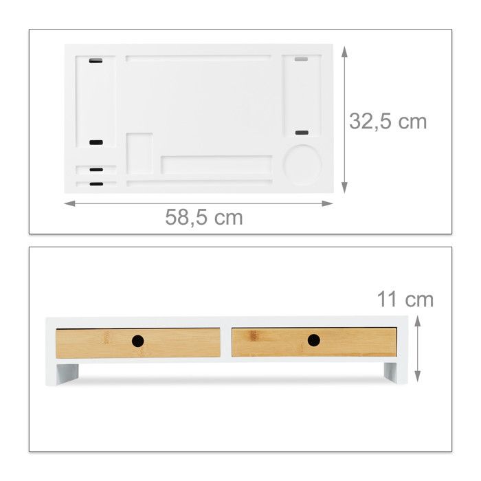 Support Ecran Bois Relaxdays Monitor Standard - Rehausseur D'écran - 2 Tiroirs - Bambou Rehausseur Ecran Pc Bureau Avec Tiroir Le support pour moniteur attirera l’attention dans votre bureau avec son design haut de gamme et le look bambou naturel. Vous trouverez de plus amples informations à ce sujet auprès du point de collecte ou de retour respectif. Les déchets électriques et électroniques ne doivent donc pas être éliminés comme déchets municipaux non triés et ne doivent pas être jetés dans les ordures ménagères. En bambou : Support de PC fait d’une matière bio - H x L x T env., 11,5 x 47 x 18 cm Haut de gamme : Support d’ordinateur portable à la veinure naturelle et à l’apparence agréable - Pas de montage nécessaire Ergonomique: Rehausseur de moniteur pour une bonne position assise tout en prévenant les douleurs de nuque en travaillant 1, 90763 Fürth en tant que fabricant d'appareils électriques et/ou électroniques sous le numéro d'enregistrement suivant (numéro d'enregistrement DEEE DE) enregistré : DE 17638816 Accomplissez les deux à la fois avec le rehausseur d’écran utile. Relaxdays Organizer da Scrivania, bambù e MDF, Portaoggetti Salvaspazio con 3 Ca Le rehausseur de moniteur vous fait regarder plus haut et permet une bonne tenue de votre corps - Déclarez la guerre à vos douleurs de dos persistantes. Support de bureau pour le rehaussement de l'écran Quiconque travaille longtemps assis à un bureau, se retrouve souvent dans une position voutée. Vous pouvez changer ça grâce au support pour écran en bambou. Grâce au rehausseur d'écran vous élevez automatiquement votre regard, ce qui vous même à avoir une bonne position assise et minimise le danger de vous blesser au dos et à la... Les propriétaires d'appareils usagés ont également besoin de séparer les piles usagées et les accumulateurs qui ne sont pas enfermés par leur ancien appareil avant d'être distribués à un point de détection. Il offre en même temps assez d’espace de rangement pour les fournitures d’écriture et les documents grâce aux 2 tiroirs. Sous le lien suivant, il est possible de consulter un répertoire en ligne des points de collecte et de rachat : https://www., ear-system., de/ear-verzeichnis/sammel-und-ruecknahmestellen 4., Remarque sur notre numéro d'enregistrement WEEE : nous sommes enregistrés auprès de la Fondation des déchets d'appareils électriques, Benno Strauß-Str. 10 kg - Matériel : en bambou - Couleur : Nature Support de bureau pour écran de PC - Assure une tenue assise bénéfique au dos à la nuque à votre bureau - 2 généreux tiroirs offrent suffisamment d’espace de rangement - Pour plus d’ordre et de clarté à votre place de travail - Ranger le clavier ou des journaux sous le support - En bambou résistant avec une belle veinure naturelle Contenu de la livraison - 1 x Support pour moniteur - Livré sans objets de décoration Clause de non-garantie Informations sur les appareils électriques et électroniques. 2 kg - Charge maximale : env. Grâce au symbole de l'appendice 3 de l'ElektroG, les propriétaires peuvent détecter les anciens appareils qui doivent être collectés séparément des déchets municipaux non triés. Principaux points forts · Pour le bureau : placez le rehausseur PC sur le bureau - Amenez le moniteur à la hauteur idéale des yeux · En bambou 5 x 22 x 16,5 cm - Dimensions intérieures du tiroir H x L x P : env. Le symbole de la collecte séparée des appareils électriques et électroniques représente une poubelle barrée sur roues., 2., Remarques sur les possibilités de retour d'équipements : les propriétaires de déchets d'équipements peuvent les fournir dans le cadre des possibilités de retour ou de collecte de leurs déchets d'équipements mises en place et disponibles par les organismes de gestion des déchets afin de garantir une élimination correcte des déchets.