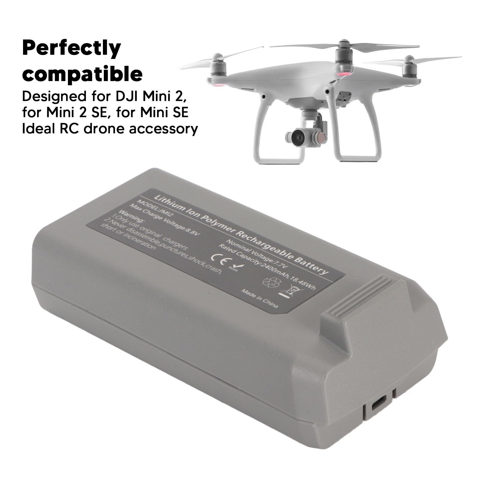 [Sécurité avancée] : Le système de gestion intelligent assure la stabilité de la batterie dans toutes les situations. Spécifications :Type d'article : Batterie de vol intelligenteMatériau : Plastique, électroniqueModèle d'usine : JMI2Tension standard : 7,7 VTension de charge maximale : 8,8 VType de batterie : 1 x batterie au lithium 2400 mAh (avec expédition de batterie pure)Liste des paquets :1 x batterie de vol intelligenteComment utiliser :Installer et utiliser [Ultra-léger] : Conception lithium-ion haute densité énergétique pour une charge réduite de 80 g sur votre drone. Batterie de vol intelligente pour drone DJI Mavic 4 Pro [Compatibilité] : conçu spécifiquement pour Mini 2 SE, garantissant un ajustement et des performances précis. Batterie de vol intelligente DJI Mavic Air JMI2 Compatible Batterie De Vol Intelligente, Batterie De Rechange Pour Drone Multi-Protection Universelle 2400 MAh Pour Mini 2 SE Mini 2 Batterie Drone Dji Mini 2 Se Batterie de vol pour drone DJI Flip