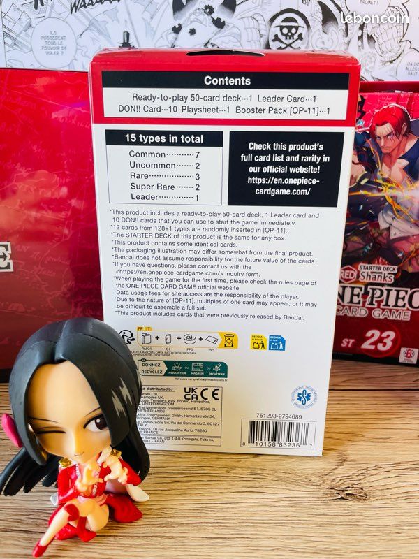 1 Booster OP-11 Les règles du jeu 6 cartes Leader populaires bénéficient de nouveaux decks de démarrage luxueux qui seront d'abord disponibles en anglais et en français ! Description du produit 1 Deck préconstruit (51 cartes) 10 cartes Don!, ! Profitez de ONE PIECE Card Game dans un nouvel environnement de jeu ! One Piece OP11 : Deck Rouge de démarrage Shanks – Boutique Loufoque 1 Booster OP-11 Les règles du jeu One Piece TCG débarque enfin en version française ! Partez à l'abordage avec ce deck pour débutant pour bien commencer cette nouvelle aventure ! 1 boosters OP11 "Des Poings Vifs comme l'Éclair" inclus Booster OP-11 Inclus Cadeau Deck Pour Débutant One Piece Card Game - ST-23 : Red Shanks - Version Française - Contient 1 Booster De OP11 - Des Poings Vifs Comme L'éclair Jeu De Cartes One Piece Préconstruit 1 Booster Pack de l'extension OP-11 : Des Poings Vifs comme l'Éclair pour renforcer immédiatement votre collection et votre deck ! C'est l'occasion parfaite de prendre la mer aux côtés du légendaire Shanks et de découvrir le monde trépidant du One Piece Card Game