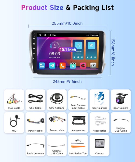 Le Bluetooth intégré assure des appels mains libres et une lecture musicale fluide, sans interférences MirrorLink vous permet de projeter l'écran de votre smartphone sur l'autoradio via Wi-Fi Wireless Carplay&Android Auto 10,1" Écran Tactile autoradio Peugeot 208 avec Navigation/caméra de recul/BT/WiFi/Miror Link/MIC/FM/SWC Accédez sans effort à la navigation, à la musique, aux appels et plus encore, améliorant ainsi la sécurité et le confort de conduite. Navigation de précision : dispose d'un module de navigation GPS intégré de haute précision, compatible avec les principales applications cartographiques Plusieurs interfaces utilisateur disponibles, personnalisables selon vos préférences Roinvou Android 15 Qualcomm 8 Core 4+64G Autoradio pour Peugeot 308 408 2007-2015 Commande au Volant et Caméra de Recul: La commande au volant intégrée vous permet de gérer les fonctions audio, les appels et la navigation directement depuis le volant, en toute sécurité et commodité, sans avoir à lâcher le volant. Autoradio poste pour Peugeot 2008 avec caméra de recul AHD, angle de vue 170° ultra-large, certification IP68 étanche et vision nocturne HD, pour une image claire dans n'importe quel environnement Caméra De Recul Peugeot 2008 Roinvou 4+64G Android Autoradio Pour Renault Master 2019-2022 Sans Fil Autoradio Avec GPS Et Wi-Fi Wi-Fi, GPS et Bluetooth: Lorsque vous êtes connecté au Wi-Fi, vous pouvez utiliser des cartes en ligne, regarder la télévision et des films en ligne, parcourir des vidéos YouTube, télécharger et installer des programmes et bien plus encore! Système Android et 4GB+64GB: Cet autoradio 10'' double DIN avec écran tactile 2., 5D pour Peugeot 208/2008 2012 2013 2014 2015 2016 2017 2018., Équipé de la dernière version d'Android, 4 Go de RAM et 64 Go de stockage interne pour un fonctionnement stable et fluide du système. CarPlay sans fil, Android Auto et MirrorLink: Carplay sans fil et Auto Android permet de connecter téléphone à la voiture 2 din radio pour Peugeot 208 sans câble USB, peut réaliser la navigation, la communication, la musique, la vidéo et d’autres fonctions.