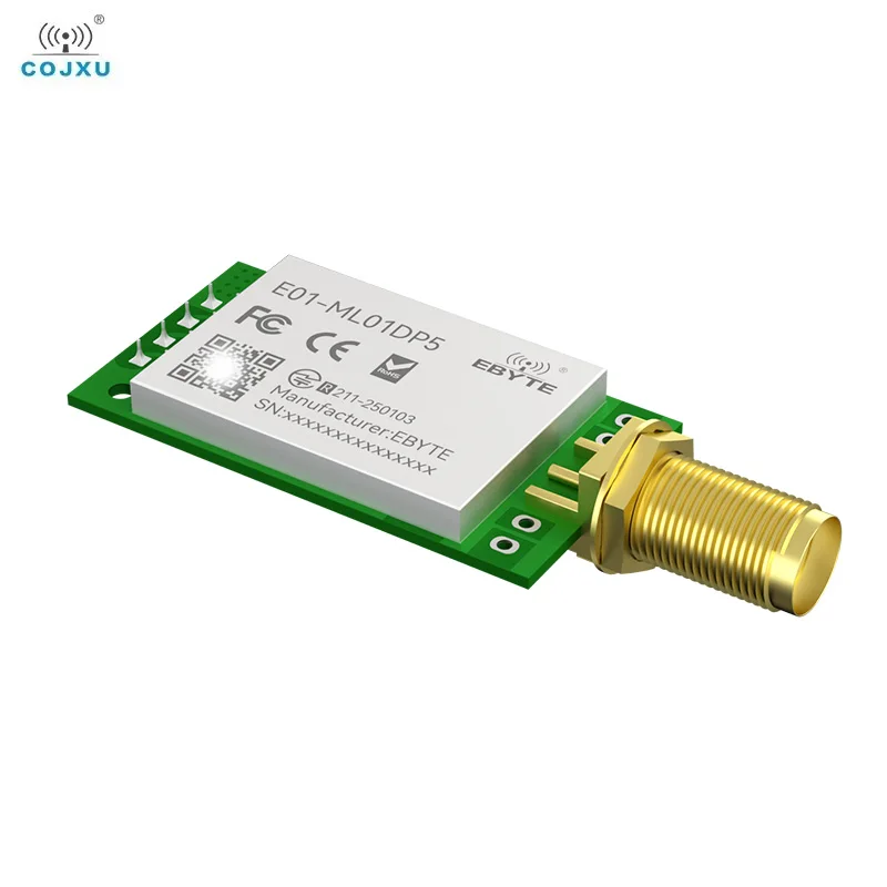 Paramètres : se connecte au MCU via l'interface SPI à un taux de 0 à 10 Mbps. [Introduction] : la performance RF de E01-ML01DP5 et la sélection des composants pendant la recherche et le développement sont toutes conformes aux normes de qualité industrielle, en utilisant un oscillateur à cristal de haute précision de 1 6 MHz de qualité industrielle, également obtenu la certification FCC, CE, RoHS. Module Sans Fil 2.4 Ghz Longue Portée Module Sans Fil CDEBYTE E01 Série 2.4GHz NRF24L01P NRF24L01 IoT Module RF Nordique NRF24L01 PA LNA 20dBm 100mW 2.4g émetteur-récepteur Module Sans Fil Longue Portée NRF24L01 + Module sans fil 2.4Ghz Prend en charge l'alimentation 2,0 V ~ 3,6 V, alimentation de plus de 3,3 V peut garantir la meilleure performance ; design standard de qualité industrielle, prend en charge -40 ~ 85 °C pour fonctionner sur une longue période ; interface SMA pour une connexion facile du câble coaxial ou de l'antenne externe ; choc amélioré. [Service après-vente] : votre satisfaction est notre poursuite éternelle, si vous rencontrez un problème, n'hésitez pas à nous contacter. Avantages : la distance de communication testée est jusqu'à 2,5 km ; puissance de transmission maximale de 100 mW, logiciel à plusieurs niveaux réglable ; prend en charge le taux de date d'air de 2 Mbps, lMbps, 250 kbps ; 125 canaux de communication pour répondre aux besoins de communication multipoint, de regroupement, de sauts de fréquence, etc. Connectez-vous au MCU via l'interface SPI à un débit de 10 Mbps. 2.4g module nrf24l01p RF khuếch đại PA LNA giao tiếp không dây 5000... Les produits ont été grandement améliorés lorsqu'il n'y a pas de PA et de LNA dans la conception. BARY NRF24L01P PA LNA Module RF sans fil SPI 2,4 GHz 2,5 km longue portée 20 dBm E01-ML01DP5 Bouclier pour Arduino RF émetteur-récepteur VR RFID Industry Control IoT [IC] : nRF24L01P Fréquence : 2,4 ~ 2,525 GHz., [Puissance] : 20 dBm., Distance : 2,5 km. [Introduction] : E01-ML01DP5 est basé sur l'original importé nRF24L01P forme nordique en Norvège.