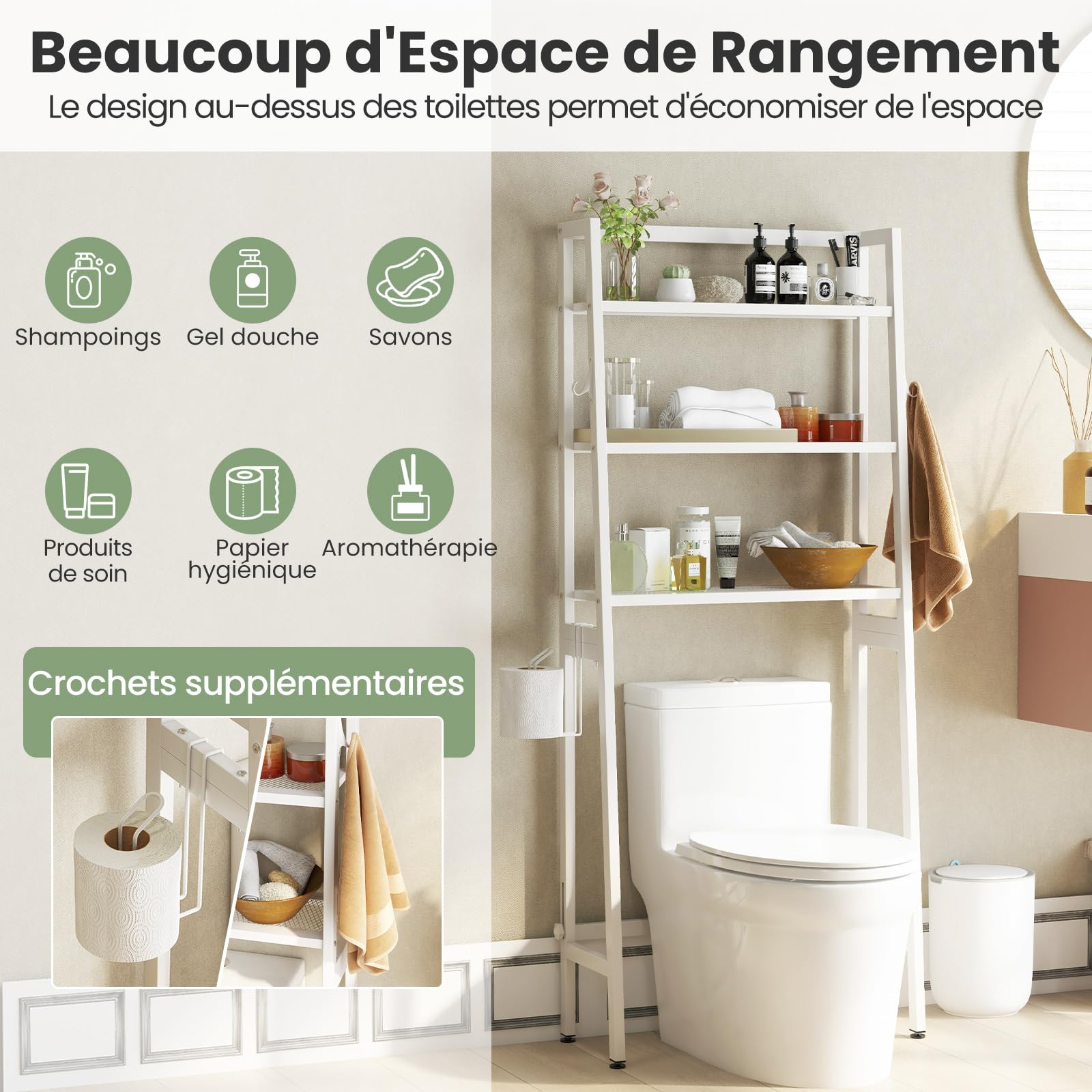 Cette organisateur polyvalent vous permet de ranger serviettes, produits d'hygiène et créer des compartiment sur mesure. Idéal pour les espaces latéraux, il offre une solution de rangement compacte et fonctionnelle sans encombrer votre intérieur. GOPLUS Meuble Salle de Bain avec 2 Portes Coulissantes, Petit Meuble de Rangement avec Porte-Papier Toilette, Compartiment à Brosse et 2 Étagères Réglables, 60 x 20 x 80 cm pour Petits Espaces, Noir SoBuy BZR119-W Armoire WC Toilettes Compact Roulante, Meuble de... Durabilité et sécurité accrues : Fabriqué en blanc avec des matériaux résistants pour une excellente durabilité, ce meuble autoportant inclut un dispositif anti-basculement pour une fixation murale sécurisée, garantissant une stabilité optimale. GOPLUS Meuble sur Pied de Salle de Baisn, 2 Tiroirs et 1 Cabinet Détails soignés pour usage quotidien : Ce placard multifonctionnel, de finition moderne et blanc, possède une surface lisse facile à nettoyer. Ses bords surélevés de 5 cm empêchent la chute d'objets et ses coins arrondis préviennent les accidents, alliant parfaitement protection, praticité et élégance pour votre salle de bain. Meuble Petit Espace Salle De Bain GOPLUS Meuble Salle De Bain Avec 2 Portes Coulissantes, Petit Armoire Salle De Bain Petit Espace Ce système ingénieux est parfait pour les petits espaces et confère une esthétique moderne à votre pièce. Ses 2 portes coulissantes facilitent l'accès et économisent l'espace. Les rangements polyvalents incluent étagères ajustables, porte-rouleaux et support pour brosse, organisant commodément tous vos essentiels.