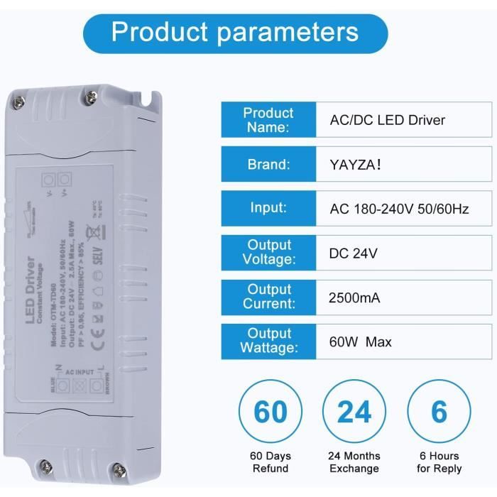 Insertion valable pour driver LED 12 W 700 mA 8-17 V Large gamme de tensions : disponibles en différents modèles avec intervalles de tension de 2,5 V à 34 V, pour supporter différents types de bandes LED. Design compact et résistant : conçu en format mini, avec indice IP65 ou IP20 selon le modèle, ce qui garantit la fiabilité pour une utilisation en intérieur et en extérieur (IP65 pour protection contre la poussière et l'eau, IP20 pour une utilisation en intérieur). OTi QBM 30/220...240/700 NFC I Driver LED 30W multi-courant constant Installation facile : modèles avec connecteurs à bornes pour un câblage simple et sûr, ce qui rend l'installation facile. A2ZWORLD Led Driver, courant constant, 12 W 700 mA 8-17 V, mini alimentation pour bandes LED, IP65 5 1049€ Livraison GRATUITE jeu. 12 juin pour votre première commande Alimentation LED 12W 700mA A2ZWORLD Led Driver, Courant Constant, 12 W 700 MA 8-17 V Driver Led 12w 700ma Marque. A2ZWORLD ; Source d'alimentation. AC/DC ; Dimensions du produit. 24P x 48l x 24H millimètres ; Type de fixation. Montage en rack ; Note actuelle. 700 mA