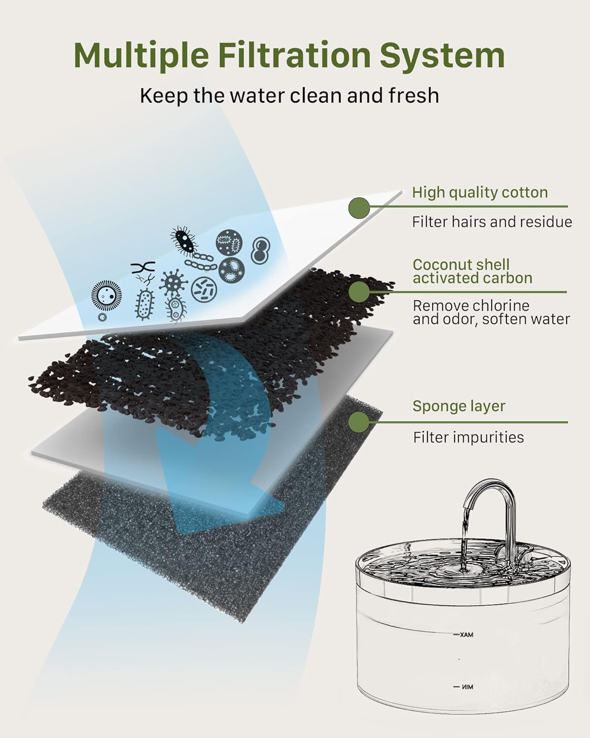Il est recommandé de changer toutes les 2 à 4 semaines dans la plupart des cas (déterminé par la qualité de l'eau et la météo, etc., ) Système de filtration multicouche : ce filtre de fontaine à eau pour chat Giotohun est fabriqué avec un système de filtration de haute qualité de tissu non tissé, de résine et de charbon actif, qui peut purifier efficacement l'eau Installation facile : il suffit de l'insérer dans la cartouche filtrante et de terminer le remplacement. Remplacement Filtre Animalerie Filtres Fontaine à Eau Chat - Charbon Actif Et Mousse Replacement Charbon Actif Purification Contenu de la livraison : ce lot contient 10 filtres pour fontaine à chat et 10 filtres en mousse pour fontaine Giotohun 2,2 l en acier inoxydable pour chat Avis (0 avis)Haliya Lot de 20 filtres de rechange pour fontaine à eau Giotohun - 2,2 l - 10 filtres de fontaine pour chat - Avec 10 filtres e221 Ce produit n'est toujours pas évalué Filtres Fontaine à Eau Chat Filtres Triple Action Fontaine à Eau Fleur Pour Chat Catit - X 2 Rechange Fontaine Giotohun Filtres Pour Fontaine À Eau Pour Chat 4 Filtres 4 Éponges, Filtres De Rechange À Charbon Actif...