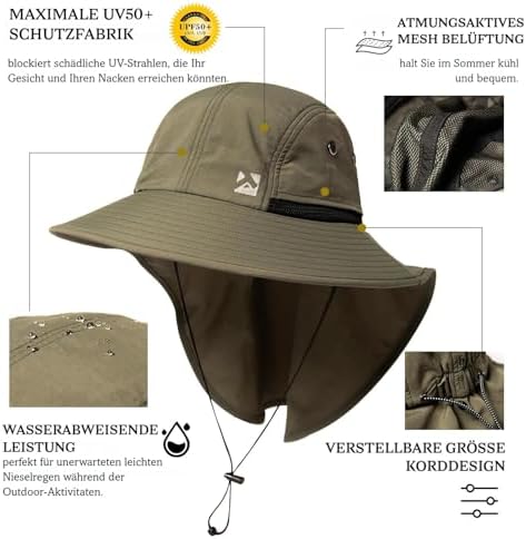 Chapeau Pêche Imperméable TOP-EX Chapeau De Soleil Boonie D'été Pour Homme, Safari Chapeau Imperméable Filet Cependant, veuillez noter que même s'il peut résister à une pluie légère, il n'est pas destiné à de fortes averses ou à une exposition prolongée à l'humidité. Protection solaire UV 50 supérieure : équipé d'un large bord UPF 50 , ce chapeau est un essentiel pour les activités de plein air. Idéal pour les pêcheurs, les cowboys et toute personne ayant besoin de couvre-chefs protecteurs, ventilés et enrichis de crème solaire au printemps, à l'automne ou aux journées ensoleillées TOP-EX Chapeau de soleil unisexe UPF 50 imperméable avec large bord filaire, léger et pliable pour homme et femme, idéal pour la pêche et la randonnée en été Avec des options pour les grandes tailles, y compris XXL et XXXL, ce chapeau est adapté pour les voyages en plein air de tous. Mentonnière coupe-vent réglable pour plus de stabilité : conçue avec une mentonnière coupe-vent amovible et réglable, notre chapeau reste bien en place par temps venteux, offrant stabilité et tranquillité d'esprit pendant que vous profitez d'aventures en plein air comme la pêche, le safari ou le camping. Chapeau de soleil anti-UV 50 pour femme à large bord avec trou pour queue de cheval, chapeau de soleil d'été pliable pour plage, pêche, randonnée, jardinage imperméable, Beige, Petit / Moyen Le tissu respirant et le bandeau rafraîchissant assurent le confort, même lors d'un port prolongé par temps chaud. Explorez les grands espaces en toute confiance avec le chapeau de soleil TOP-EX à large bord, un choix polyvalent et pratique pour les hommes et les femmes. Doté d'un large bord de 7 cm et d'une protection solaire UPF 50+, il vous protège efficacement contre les rayons UV nocifs, parfait pour les longues journées dans le jardin ou sur le terrain de cricket. Disponible en trois tailles avec un cordon élastique réglable, il offre un ajustement parfait pour tout le monde. La maille respirante autour de la couronne offre un confort rafraîchissant, essentiel pour les randonnées estivales et les aventures en voile. Protection solaire améliorée pour les aventures en plein air : notre chapeau dispose d'une protection solaire exceptionnelle UPF 50 et d'un bord large de 7 cm pour protéger efficacement votre visage et vos yeux des rayons UV nocifs pendant la randonnée, le safari, la pêche, la marche et d'autres activités de plein air, vous permettant de profiter du grand air sans vous soucier des dommages causés par le soleil. 【Taille pour tout le monde avec TOP-EX】: disponible en trois tailles réglables : M/L (56-59 cm), L/XL (60-62 cm), et XL/XXL (63-66 cm), et les options TOP-EX spécialement conçues pour les grandes tailles, assurant un ajustement confortable pour tous les amateurs d'aventure. Que vous soyez un jardinier passionné, un pêcheur passionné ou un randonneur du week-end, ce chapeau est conçu pour répondre à tous vos besoins.