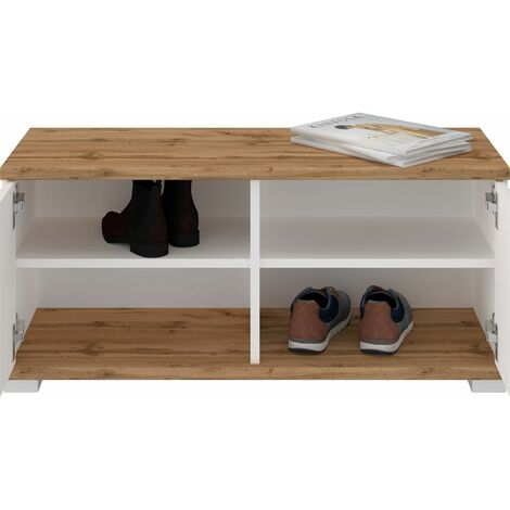 Banc De Rangement Pour Chaussures Mara - Meuble à chaussures BUT Complétez votre entrée avec notre portemanteau Viella de la même collection, pour un intérieur harmonieux. Meuble Chaussure Coussin Banc De Rangement à Chaussures Viella L 90 Cm - Gris Cosmos Et Chêne Artisan - Meuble D'appoint Meuble Entrée 90 Cm Description du produit Le banc à chaussures Viella ., ., ., avec ses 2 étagères intérieures, est un meuble de rangement pratique et design pour meubler votre entrée. des chaussures: 47 - Dimensions monté: 40 x 90 x 34 cm (H x L x P) - Couleur: Chêne artisan/Noir - Matériel: Panneau de particules, décor, MDF Avertissement De Sûreté Ne pas dépasser la capacité de charge maximale de 100 kg pour l'assise et de 5 kg par étagère. Assembler le produit en suivant les instructions de montage pour éviter tout risque d'accident. C’est la solution idéale pour ranger chaussures, couvertures ou objets du quotidien tout en optimisant l’espace. Qu’il s’agisse d’un banc rembourré pour la salle à manger, d’un banc d’entrée avec rangement ou d’un banc déco pour la chambre, vous trouverez chez le modèle parfait Bancs | Bancs design, pratiques et confortables pour la maison Grâce à son design classique et l'association du blanc et du chêne artisan, ce banc de rangement se mariera aisément dans votre intérieur. Caractéristiques du produit : - Poids max assise: 100 kg - Poids max par étagère : 5 Kg - Dimensions intérieures du compartiments haut: 42 x 15 x 28 cm - Dimensions intérieures du compartiment bas : 42 x 17 x 28 cm - Surface résistante aux éraflures - Facile à nettoyer avec un chiffon humideLivraison et montage : - Contenu de la livraison : banc rangement à chaussures, sans décoration, notice de montage - Le produit est livré en pièces détachées - Assemblage facile grâce à la notice - Photo non contractuelleRésumé: - Nombre de paires de chaussures: 8 - Nombres de portes: 2 - Taille max. Ce banc vous permet de ranger environ 8 paires de chaussures et de vous assoir afin de mettre ou enlever vos chaussures.