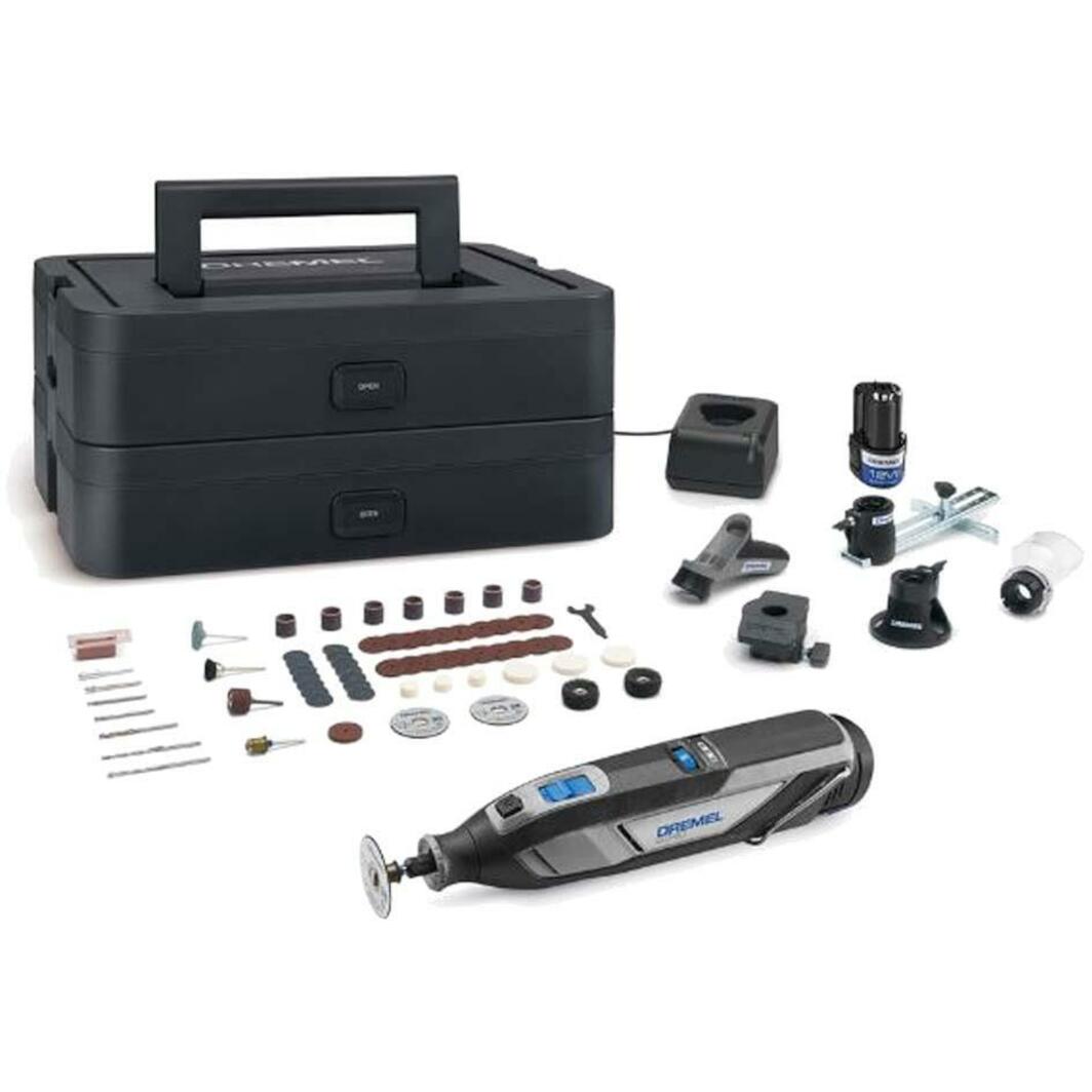 Dremel 8240 5/65 outil multi-usage sans-fil batterie 12V | WhichOne Outil Multifonction Sans Fil 12V Dremel 8240 Kit D'outils Rotatifs Sans Fil 12 V Avec Vitesse Dremel 8240 Sans Fil Obtenez 1 an de garantie en plus en enregistrant votre outil sur MyDremel Travaillez où vous voulez, quand vous voulez. Confort : Ergonomie améliorée avec un meilleur positionnement des boutons et une prise en main confortable anti-dérapante pour une manipulation aisée et un contrôle supérieur. Parmi les caractéristiques principales du Dremel 8240, on retrouve une vitesse de rotation réglable de 5.000 à 35.000 tr/min pour une précision maximale. Il est alimenté par une batterie lithium-ion performante, incluse dans le pack, assurant une utilisation intensive EZ Twist : Avec un embout EZ-Twist pour un changement d'accessoires plus rapide et plus facile, parfait pour les accessoires Dremel MAX durables et de haute performance. Conçue pour vous, le Dremel 8240 sans fil vous permet de donner le meilleur de vous-même. Vous bénéficiez de la même puissance que le Dremel 4250 filaire, mais sans être lié à une prise de courant Garantie : 2 ans de garantie par défaut. Vitesse Entirement Variable : La commande de vitesse entièrement variable de 5., 000 à 35., 000 tr/min permet une précision et un contrôle maximum dans de nombreuses applications différentes.