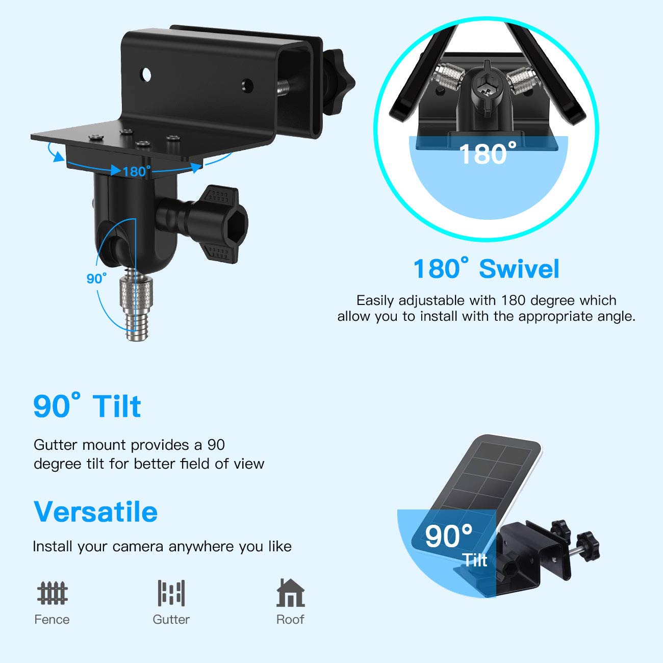 Solution de montage : ce support de gouttière maintient en toute sécurité les caméras et les panneaux solaires, offrant une configuration fiable pour vos solutions énergétiques. Caractéristiques : Nom de la pièce : support de gouttière., Matériau : ABS., Dimensions : 17 x 6 cm. Résistant aux intempéries : protège votre caméra de sécurité de la pluie, de la poussière et des manipulations avec un support en alliage d'aluminium conçu pour une utilisation en extérieur ; compatible avec les installations de gouttières de pluie pour étendre la portée de surveillance sans outils ni dommages au mur Construction : fabriqué en matériau ABS de haute qualité, il assure une performance durable et une résistance aux diverses conditions météorologiques. * Taille... Construction résistante aux intempéries : fabriqué à partir de matériau ABS, ce support est conçu pour résister à diverses conditions météorologiques, performance durable. Support universel 2 en 1 pour appareil photo de gouttière, compatible avec Ring/Blink/Arlo/eufycam, appareil photo et panneau solaire avec port à vis standard 1/4, support mural extérieur, blanc Taille compacte : mesurant 17 cm, son design compact s'adapte parfaitement à différents environnements sans être gênant, ce qui le rend adapté à n'importe quel espace. Installation facile : conçu pour une installation simple, ce support vous permet de positionner vos appareils sans effort selon vos besoins. Support De Gouttière Pour Panneau Solaire, Support D Gouttiere Pour Panneau Solaire Support Dalimentation En Alliage Daluminium Abs Resistant Aux Intemperies Versions De Panneaux Solaires Compatibles Avec Arlo Hdlightutrapro 87924686 Couleur : blanc et noir. Caractéristiques : * Solution de montage polyvalente : ce support de gouttière est conçu pour maintenir en toute sécurité les caméras et les panneaux solaires, ce qui en fait un choix idéal pour les solutions énergétiques extérieures. * Options de couleur élégantes : disponible en blanc et noir, il complète diverses esthétiques tout en conservant la fonctionnalité.