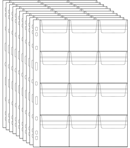 Ensemble : Le lot contient 10 feuilles, permettant de ranger jusqu’à 200 pièces de monnaie. Matériau : Fabriqué en plastique transparent permettant de voir le contenu des deux côtés tout en protégeant les pièces de la poussière et des rayures. Perforation : La feuille est perforée selon les standards, s'adaptant à la plupart des classeurs pour une organisation facile de votre collection. Classeur Piece De Collection COLLECTOR - Pages Pour Album De Pièces Ou De Médailles, Intercalaires, Classeur, Feuilles De Recharge Supplémentaires, Inserts Pour Livres De Pièces Livre Pieces De Monnaie Collection Classeur de collection pour médailles souvenirs 10 pages pour l'album de pièces pour et autres albums. Taille globale de la page: 165 mm x 212 mm. TYPE de page 12: avec 12 poches sur chaque page (46... SAL livre de collection de pièces de monnaie Album de pièces de monnaie