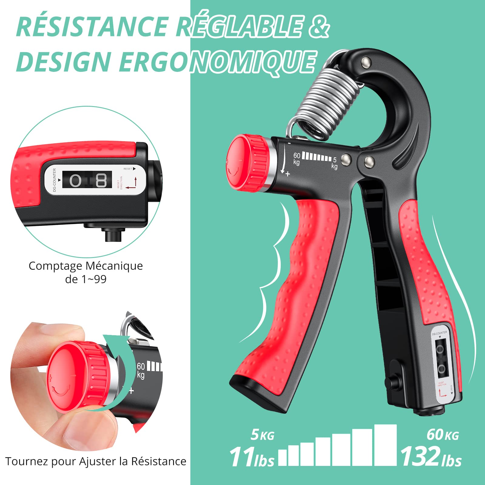 Entraîneur De Force De Préhension,Exerciseur De Doigt 4 Doigts Muscleur Renforceur De Poignée Réglable, Entraîneur De Poignée, Compteur De Poignet, Avant-bras, Exercice De Main Pour La Construction Musculaire, 5-60kg Sport - Découvrez notre offre Renforcement de la poignée - Entraîneur de force de préhension réglable de 5 à 100 kg pour le renforcement musculaire. Livraison gratuite à partir de 25€* | Paiement sécurisé | 4x possible | Retour simple et rapide CONCEPTION PORTABLE : Petit et léger, cet appareil électronique de renforcement de la force de préhension est facile à transporter et permet de s'entraîner n'importe où et n'importe quand, sans équipement spécifique