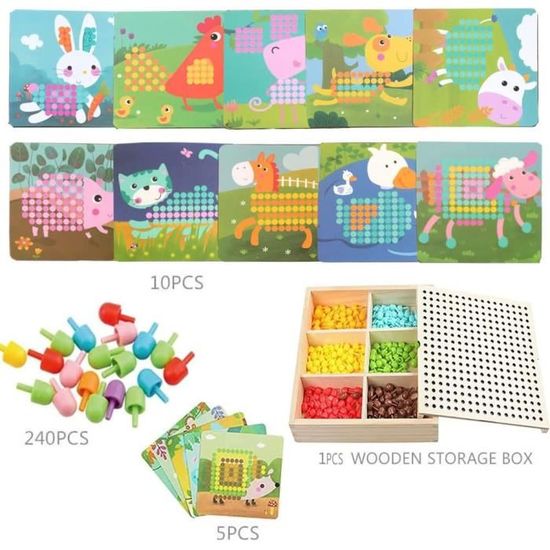 Excellent pour les cadeaux : nos jouets pour enfants sont d'excellents jouets de voyage, récompenses de classe, anniversaire, Pâques, Thanksgiving, Noël ou cadeaux attentionnés pour toutes les occasions Coloriage Lapin Dessin Pour Les Tout-petits | Vecteur Premium Présentation du produit Jouets d'art de bouton pour les tout-petits correspondant au panneau perforé en mosaïque avec 6 images et 25 boutons jouets éducatif Jouets STEM créatifs : associez et clipsez les gros boutons aux cartes aux motifs aux couleurs vives pour créer un design unique de votre enfant. Jouet d'apprentissage inspiré de Montessori : le panneau perforé mosaïque aux couleurs assorties conçu avec des cartes puzzle et attern, il favorise les compétences de résolution de problèmes et la créativité pour les tout-petits de 3 ans et plus. Jouets éducatifs : non seulement comme jeu de puzzle, mais développe la motricité fine de vos enfants, la coordination œil-main, le tri des couleurs, l'imagination et la création d'un tableau chargé Design pratique et durable : boîte de rangement compacte avec loquets sécurisés pour garder tous les boutons et images lorsque vous finissez le jeu pour éviter la perte des boutons, ce qui rend ce jouet idéal pour les voyages en voiture, les visites des grands-parents ou une utilisation en classe AluAbi Jouets d'art bouton pour les tout-petits Jouet Montessori Couleurs Formes AluAbi Jouets D'art Bouton Pour Les Tout-petits De 3 à 5 Ans, Tableau Perforé En Mosaïque De Couleurs Assorties Et Jeu De Motricité Fine, Activité D'apprentissage Préscolaire Précoce Pour Garçons Et Jeux Motricité Fine 3 Ans