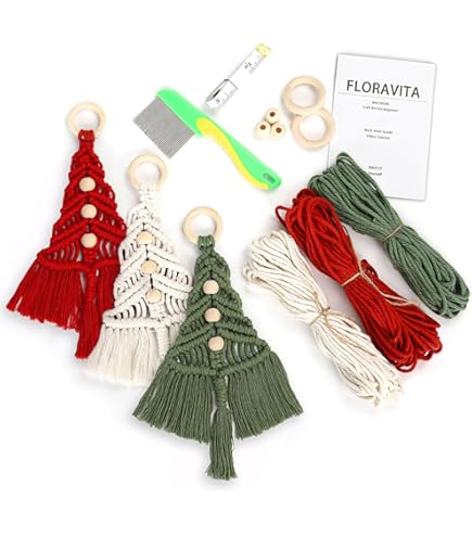 Kit Macramé Noël ORIGACH Lot De 9 Kits De Décorations De Noël En Macramé à Décoration Murale Macramé Le kit comprend tous les accessoires nécessaires : 1 cordon en coton beige de 20 m. Chacun est plein d'atmosphère de Noël, ajoutant des couleurs festives de Noël à votre décoration d'intérieur. 1 perle en bois (20 mm). Au milieu de la vie quotidienne bien remplie, fabriquer ces décorations de Noël uniques en macramé avec votre famille renforce non seulement le lien émotionnel entre les membres de la famille, mais ajoute également une forte atmosphère festive au prochain Noël tout en profitant du plaisir de les fabriquer. Que vous le fassiez vous-même ou que vous l'offriez à vos amis et à votre famille, c'est un excellent choix de cadeau. Lot de 9 kits de macramé sur le thème de Noël : notre kit de décoration de Noël à suspendre comprend tous les accessoires nécessaires pour fabriquer des pendentifs en macramé de Noël tels que des cordes en coton multicolores, des anneaux en bois, des perles en bois, des ailes d'ange, des pièces en bois, des étoiles en bois, du fil d'argent, des ciseaux, un mètre ruban, un peigne et ainsi de suite, et la quantité d'accessoires est suffisante pour répondre à vos besoins de bricolage. Profitez d'un moment amusant de bricolage avec votre famille : cet ensemble offre aux membres de la famille l'occasion de créer de merveilleux souvenirs ensemble. Le kit de 9 décorations de Noël ORIGACH en macramé est le cadeau parfait pour la saison de Noël. Des décorations de Noël en macramé Ce kit de bricolage est capable de faire des élans, des flocons de neige, de la canne à sucre, des cloches, des couronnes de Noël et d'autres accessoires suspendus sur le thème de Noël qui ajouteront un charme unique à votre sapin de Noël. Découvrez 35 idées déco de Noël DIY faciles pour personnaliser votre intérieur avec des créations originales à faire soi-même 1 fil en aluminium argenté (5 m) et 2 copeaux en bois ailes d'ange. Cadeau DIY : c'est un excellent cadeau pour les amis ou la famille qui aiment les loisirs créatifs en macramé. Instructions étape par étape : notre kit de décorations de Noël en macramé est idéal pour les débutants. 1 anneau en bois de 60 mm, 4 anneaux en bois de 40 mm, 12 perles en bois (15 mm). 1 cordon en coton vert de 15 m. 1 boîte de rangement., Remarque : 1., En raison des différences d'écrans et de résolutions, la couleur que vous voyez peut être légèrement différente de celle de la photo., 2., Le kit est livré avec des pièces tranchantes, veuillez l'utiliser avec précaution., 4., Ce kit n'est pas un produit fini, vous devez le bricoler vous-même. En parcourant cet article, découvrez des idées et des inspirations variées pour créer vos propres décorations de Noël en macramé. Grâce à des tutoriels détaillés, vous apprendrez à réaliser vous-même des suspensions, couronnes et autres ornements festifs 1 cordon en coton rouge de 20 m. Variété de designs de style sur le thème de Noël : les kits de décorations de Noël en macramé peuvent faire 9 décorations de Noël en macramé sur le thème de Noël dans une variété de formes et de couleurs.